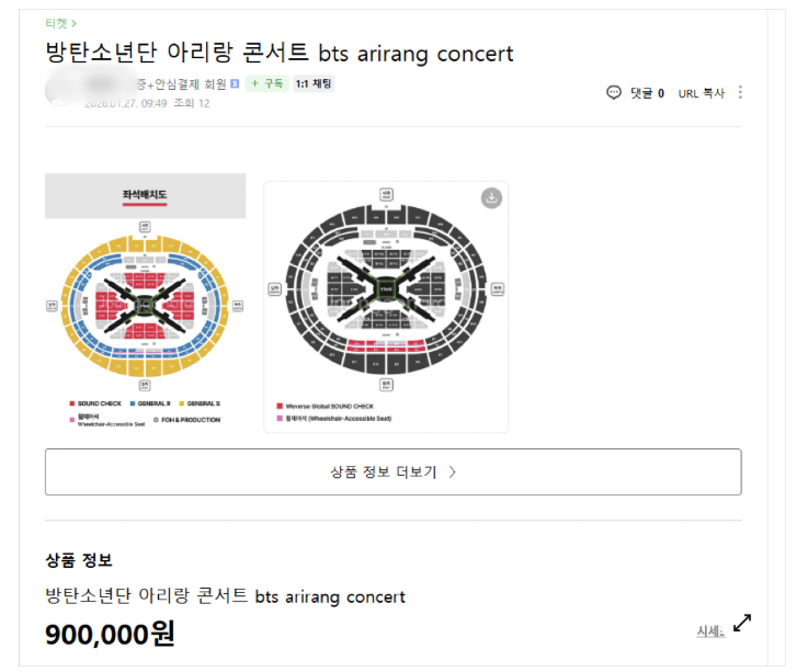 กิจกรรมการขายต่อยังแพร่กระจายอย่างรวดเร็วในแพลตฟอร์มสินค้ามือสองในท้องถิ่น บนเว็บไซต์ Junggonara ซึ่งเป็นหนึ่งในเว็บไซต์ตลาดนัดออนไลน์ที่ใหญ่ที่สุดของเกาหลี มีการนำตั๋วมาลงขายในราคา 900,000 วอน (19,000 บาท) เมื่อวันอังคารที่ผ่านมา
