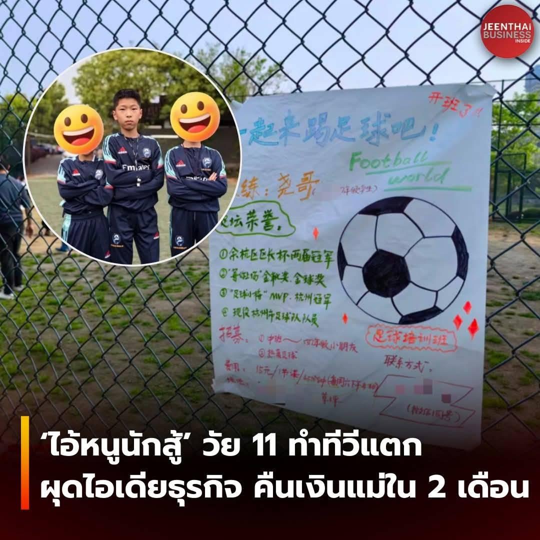 ⚽ ‘ไอ้หนูนักสู้’ วัย 11 ทำทีวีแตก เลยผุดไอเดียธุรกิจ หาเงินคืนแม่ได้ใน 2 เดือน