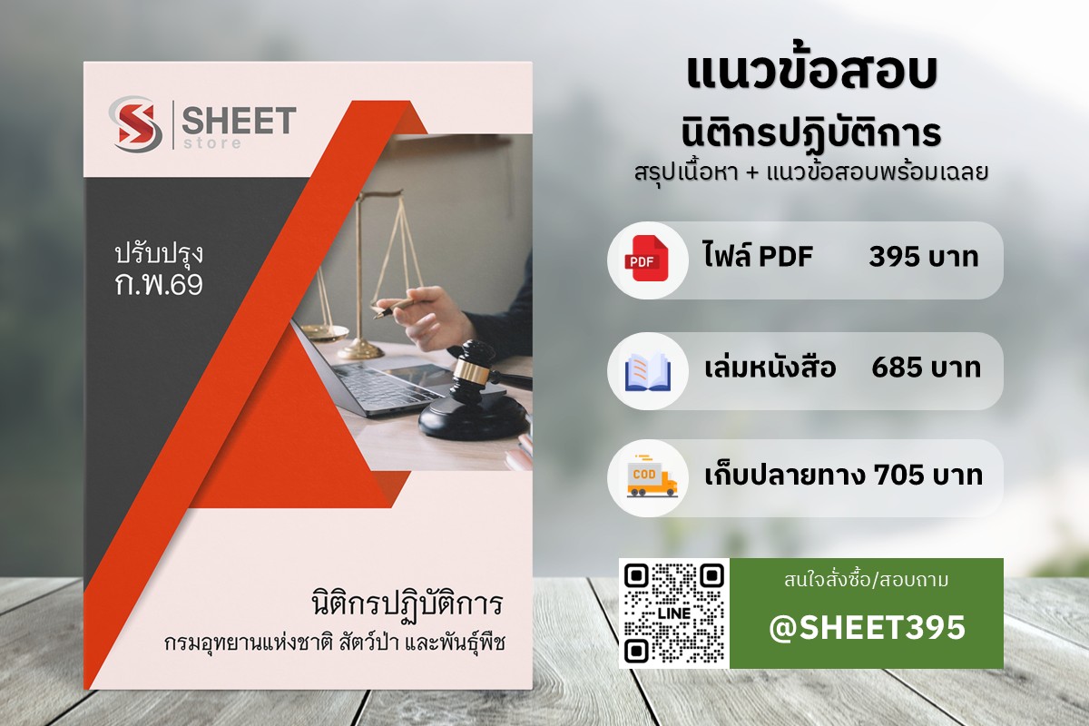 แนวข้อสอบ นิติกรปฏิบัติการ กรมอุทยานแห่งชาติ สัตว์ป่าและพันธุ์พืช ฉบับสมบูรณ์ มกราคม 2569 สรุปเนื้อหา + แนวข้อสอบพร้อมเฉลยอธิบาย จัดทำโดยทีมงานมืออาชีพมากประสบการณ์ ครบถ้วนทุกเนื้อหาในเล่มเดียว ตรงตามประกาศสอบ