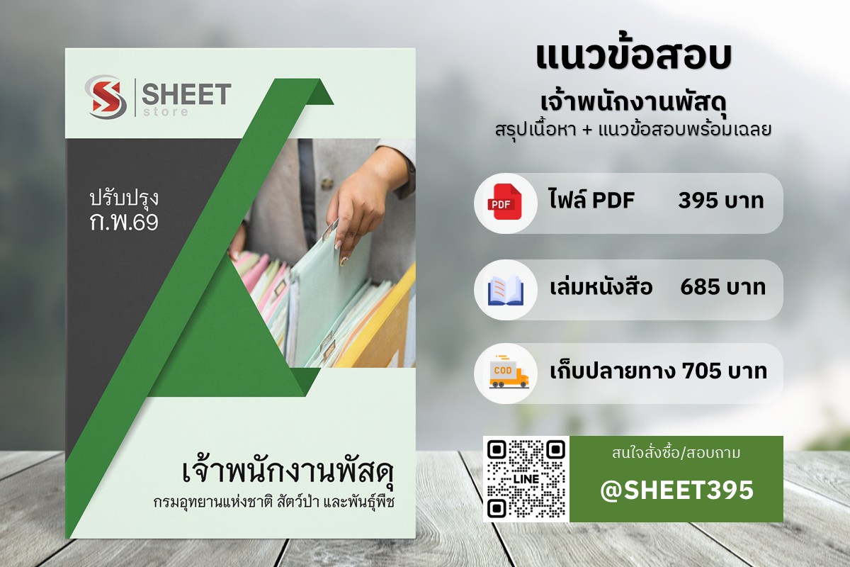แนวข้อสอบ เจ้าพนักงานพัสดุ กรมอุทยานแห่งชาติ สัตว์ป่าและพันธุ์พืช ฉบับสมบูรณ์ มกราคม 2569 สรุปเนื้อหา + แนวข้อสอบพร้อมเฉลยอธิบาย จัดทำโดยทีมงานมืออาชีพมากประสบการณ์ ครบถ้วนทุกเนื้อหาในเล่มเดียว ตรงตามประกาศสอบ