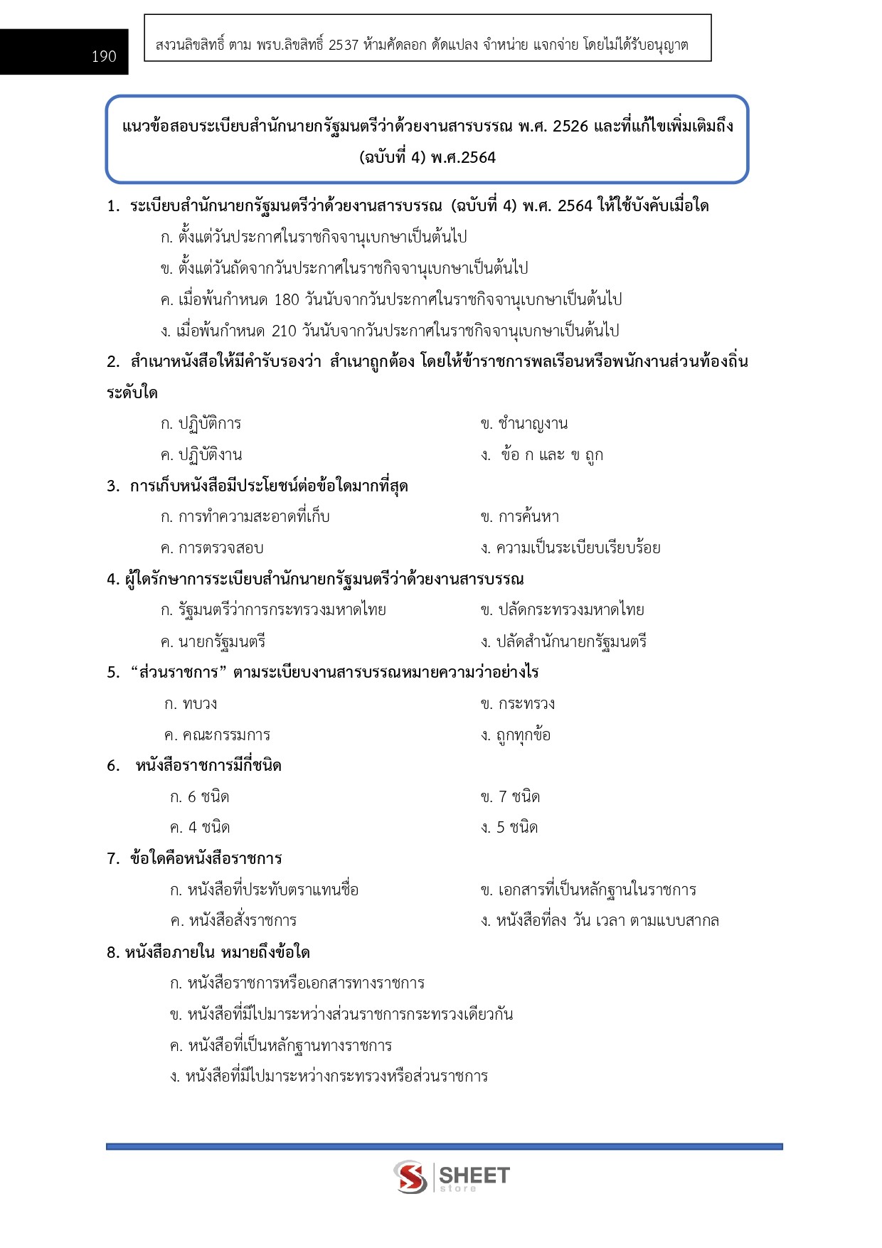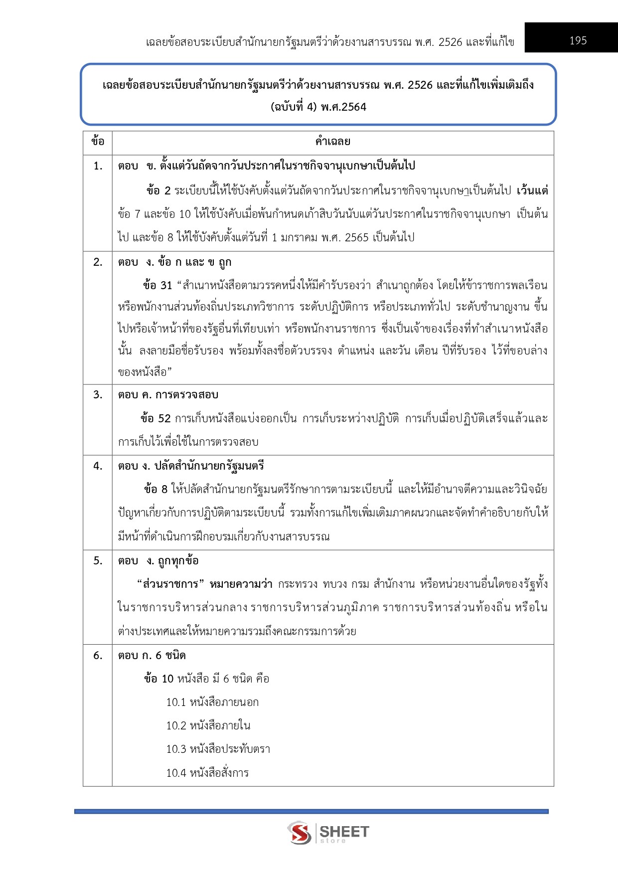 - แนวข้อสอบ สรุปสาระสำคัญระเบียบสำนักนายกรัฐมนตรีว่าด้วยงานสารบรรณ พ.ศ. 2526 และที่แก้ไขเพิ่มเติมถึง (ฉบับที่ 4) พ.ศ. 2564