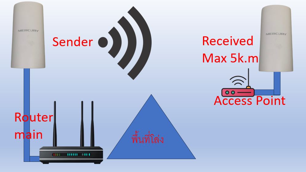 Access Point (Outdoor) ที่มีเสาอากาศแบบทิศทาง (Directional Antenna) ยิงสัญญาณเข้าหากันโดยตรงครับ