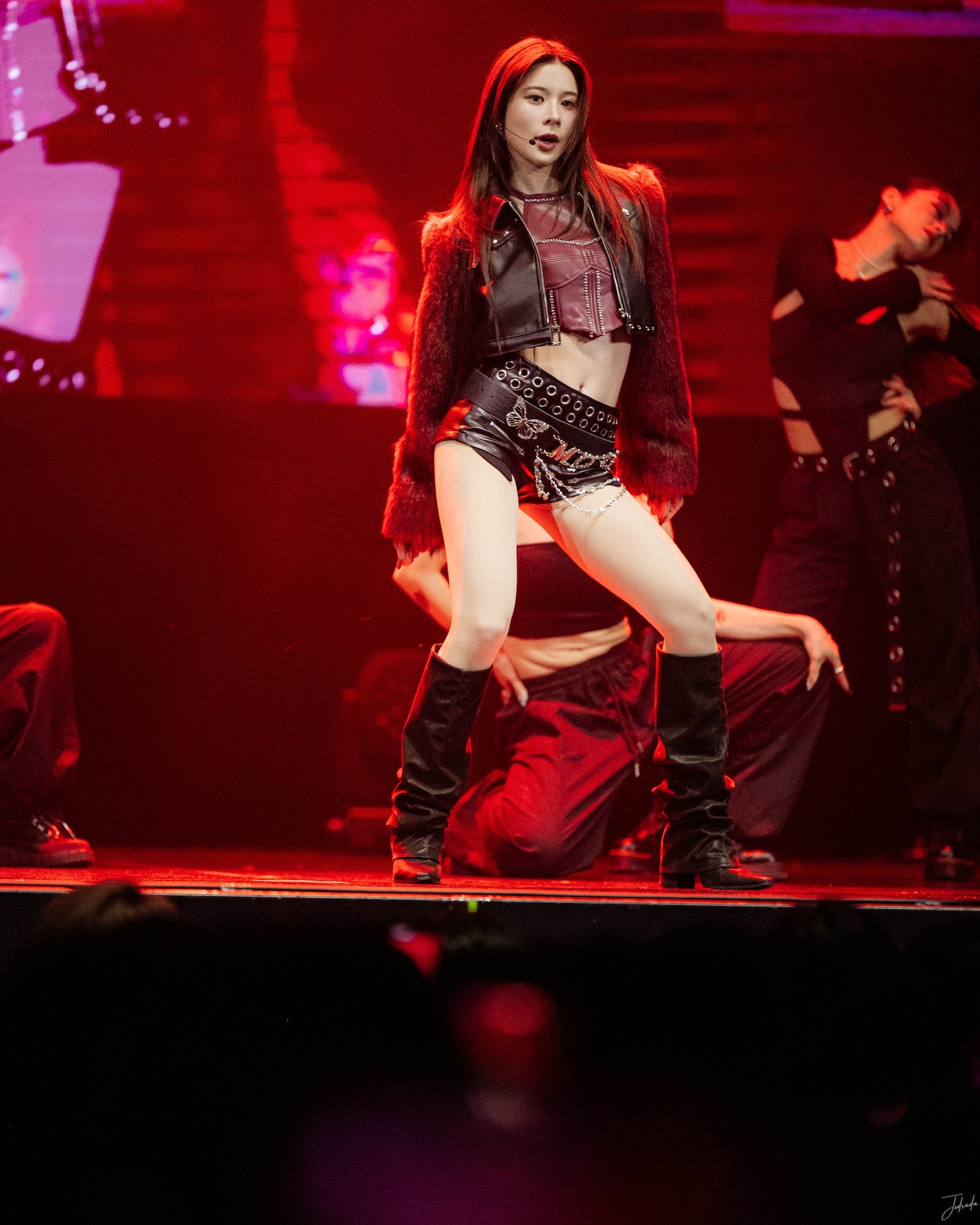 "สวยพิฆาต" กับชุดหนังสีแดง - ดำสุดจี๊ด โชว์สเตปแดนซ์ที่ทั้งเท่และเซ็กซี่ขยี้ใจแบบสิบเต็มสิบไม่หัก ก่อนจะเบรกความฮอตมาเสิร์ฟโชว์โมเมนต์หวานๆ ทั้งสบตา ทั้งจับมือ ทำเอาแฟนคลับฟินตัวแตก จิ้นกันกระจายแบบไม่ต้องพักหายใจกันเลยทีเดียว นอกจากนี้ยังมีกิจกรรมบนเวทีที่เรียกเสียงหัวเราะและรอยยิ้ม รวมถึงช่วงพูดคุยที่ทั้งคู่ได้เผยความรู้สึกซึ้งๆ จนทำให้บรรยากาศเต็มไปด้วยความประทับใจ