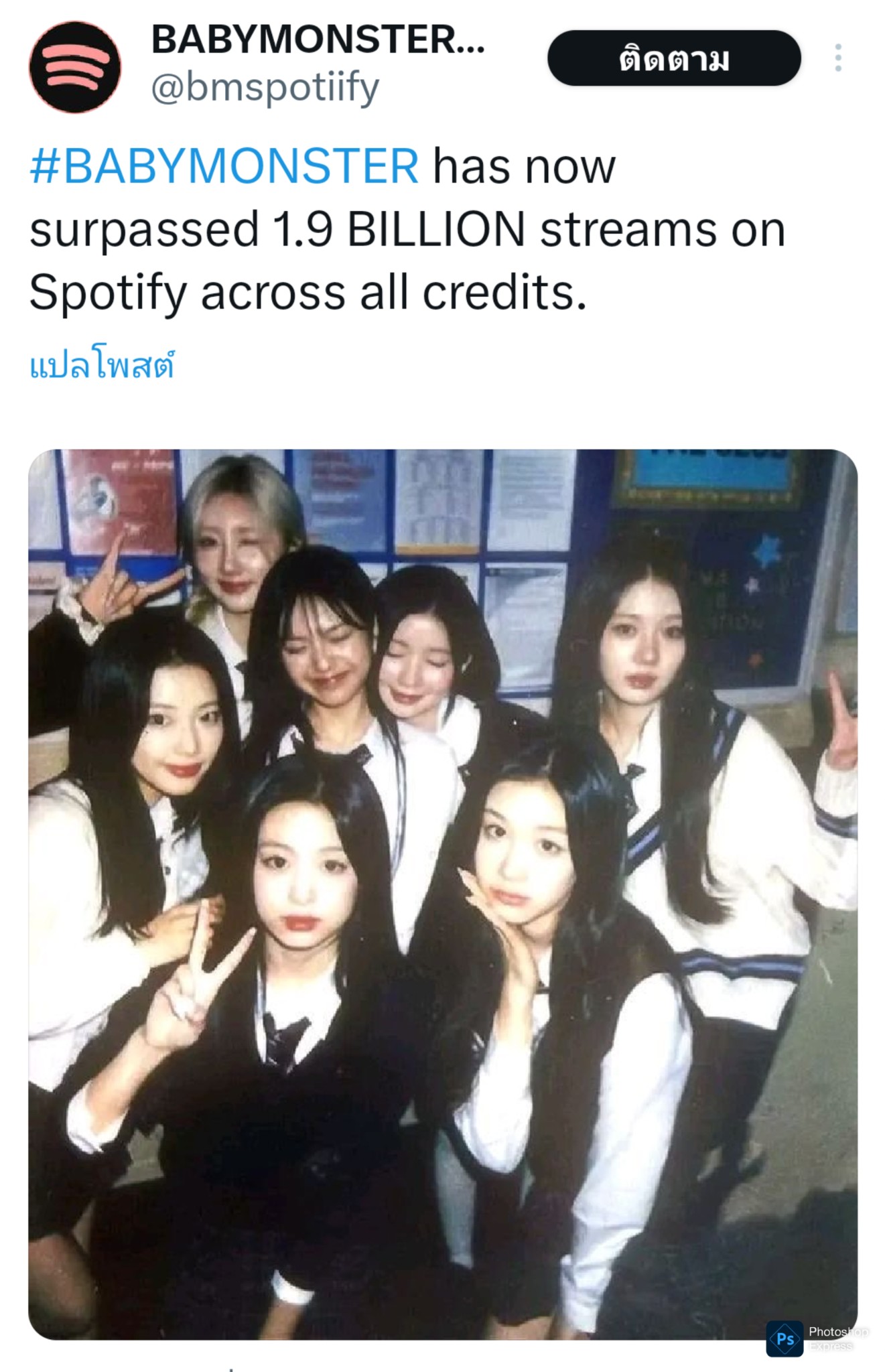 BABYMONSTER คาดว่าจะเป็นศิลปินเคป๊อปเจน 5 รวมชายหญิงวงแรกในประวัติศาสตร์เคป๊อปที่มียอดสตรีม Spotify เกิน 2 พันล้านสตรีม