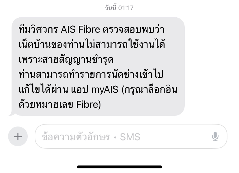 ทีมวิศวกร AIS Fibre ตรวจสอบพบว่า เน็ตบ้านของท่านไม่สามารถใช้งานได้