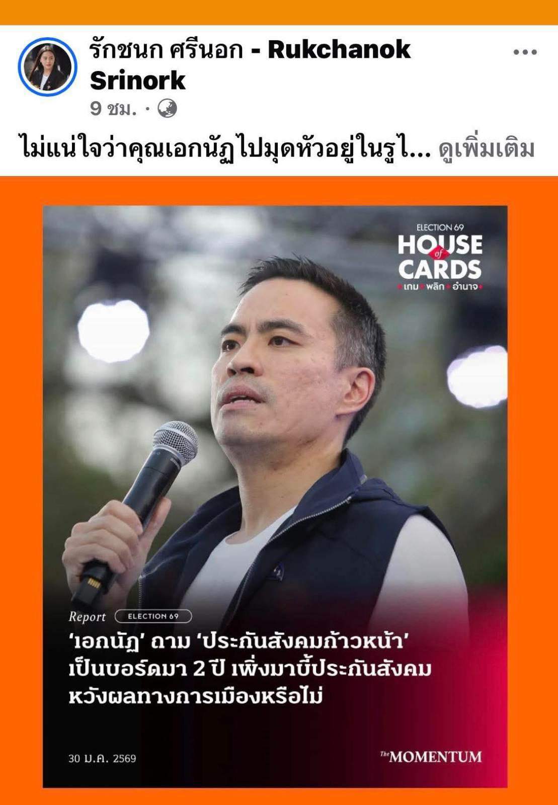 วันที่ 30 ม.ค.69 นางสาวรักชนก ศรีนอก ผู้สมัครบัญชีรายชื่อ พรรคประชาชน โพสต์