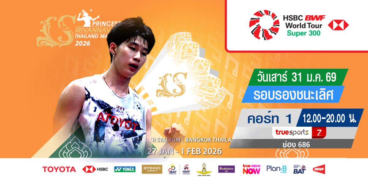 เชียร์สด ! แบดมินตัน PRINCESS SIRIVANNAVARI Thailand Masters 2026 : รอบรองชนะเลิศ (31 ม.ค. 69) (คู่แรก 12.00 น.)