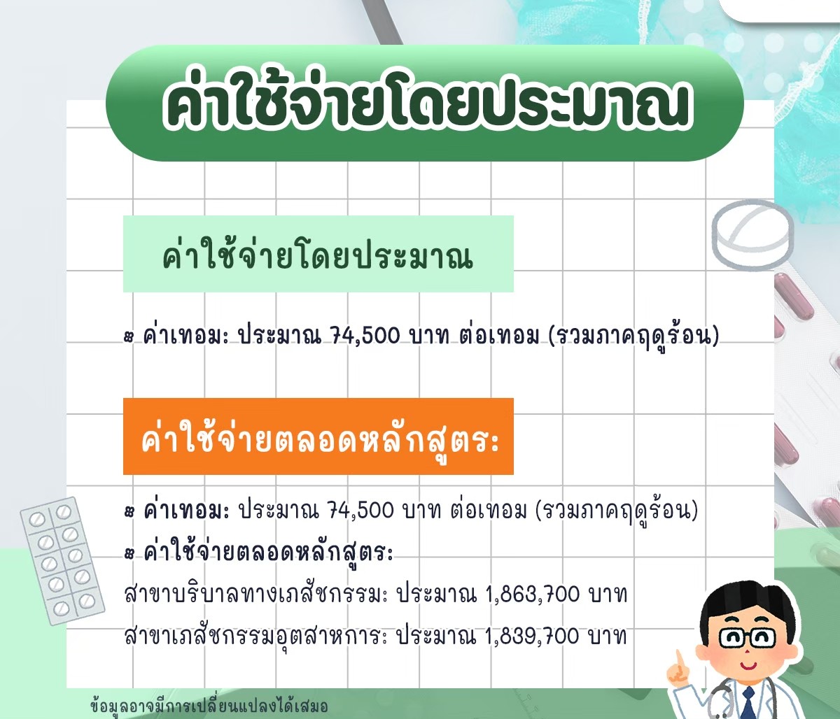 • ค่าใช้จ่ายตลอดหลักสูตร (โดยประมาณ):