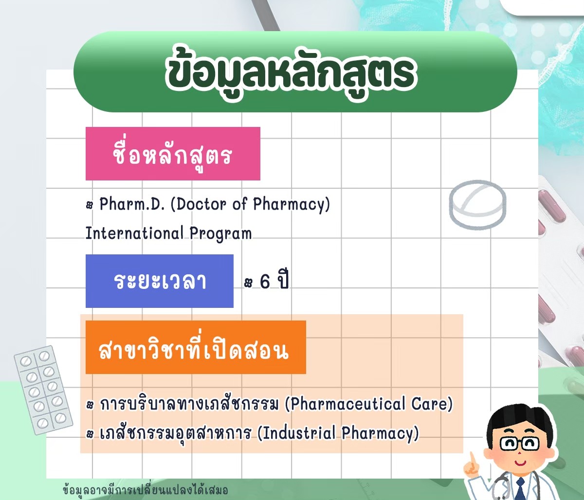 • หลักสูตร 6 ปี: ได้วุฒิ Pharm.D. (Doctor of Pharmacy) มั่นใจในวิชาชีพ