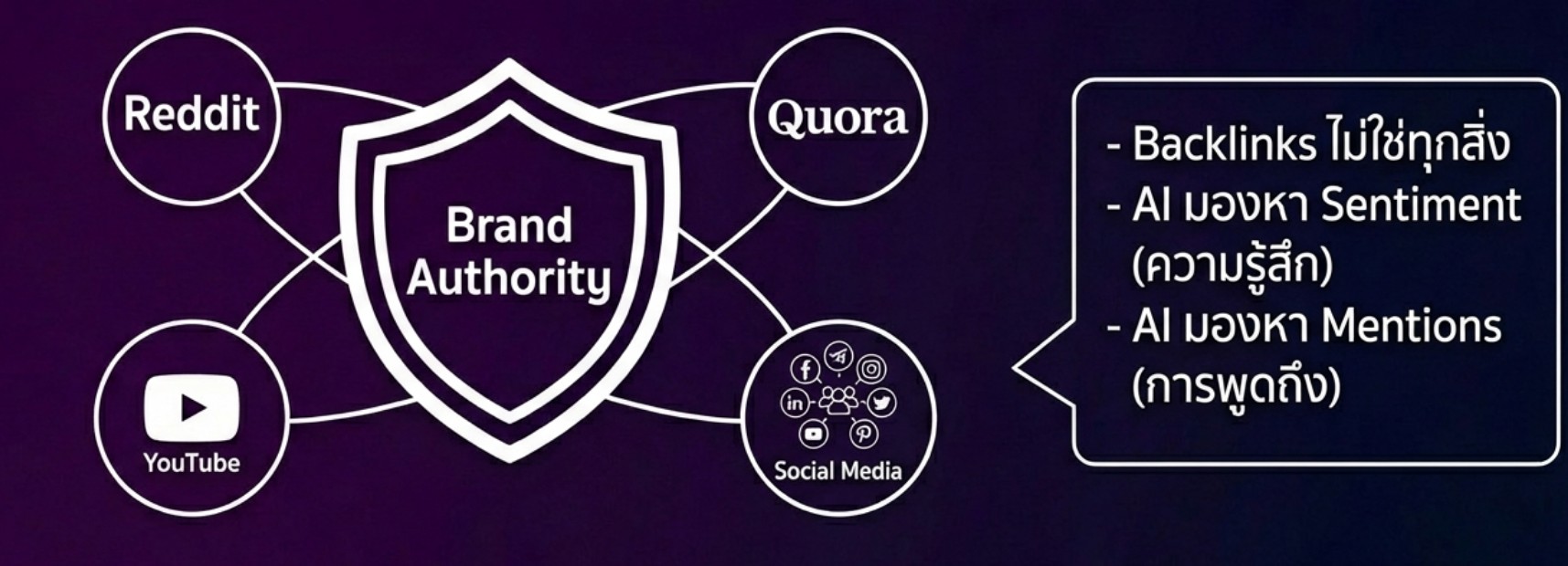 แต่ที่สำคัญกว่าคอนเทนต์คือ การสร้างความน่าเชื่อถือ ในโลกของ AEO ความน่าเชื่อถือไม่ได้มาจาก Backlinks เพียงอย่างเดียวแล้วครับ แต่มันมาจาก Online Reputation หรือการถูกพูดถึงในวงกว้างบนหลายแพลตฟอร์ม ระบบ LLM จะสแกนหา ทามติ หรือความเห็นร่วมจากหลายแหล่งที่เชื่อถือได้ นั่นหมายความว่า ถ้าสินค้าหรือแบรนด์ของคุณถูกกล่าวถึงในเชิงบวกบน Reddit, Quora, YouTube, หรือแม้กระทั่ง Social Media อย่างสม่ำเสมอ คุณจะถูกประเมินว่ามี Authority หรือความน่าเชื่อถือสูงกว่าแค่การมีเว็บไซต์ที่ติดอันดับ Google