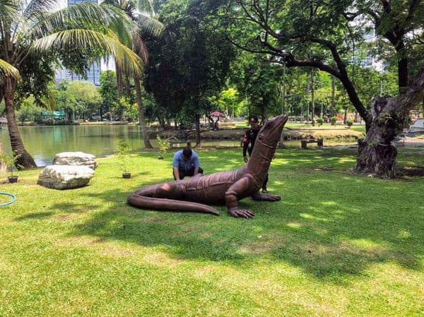 กรุงเทพมหานคร มองเห็นโอกาส ใช้ประโยชน์จากกระแสความนิยมนี้ โดยการตั้งประติมากรรมกิ้งก่าขนาดยักษ์ไว้กลางสวนสาธารณะ