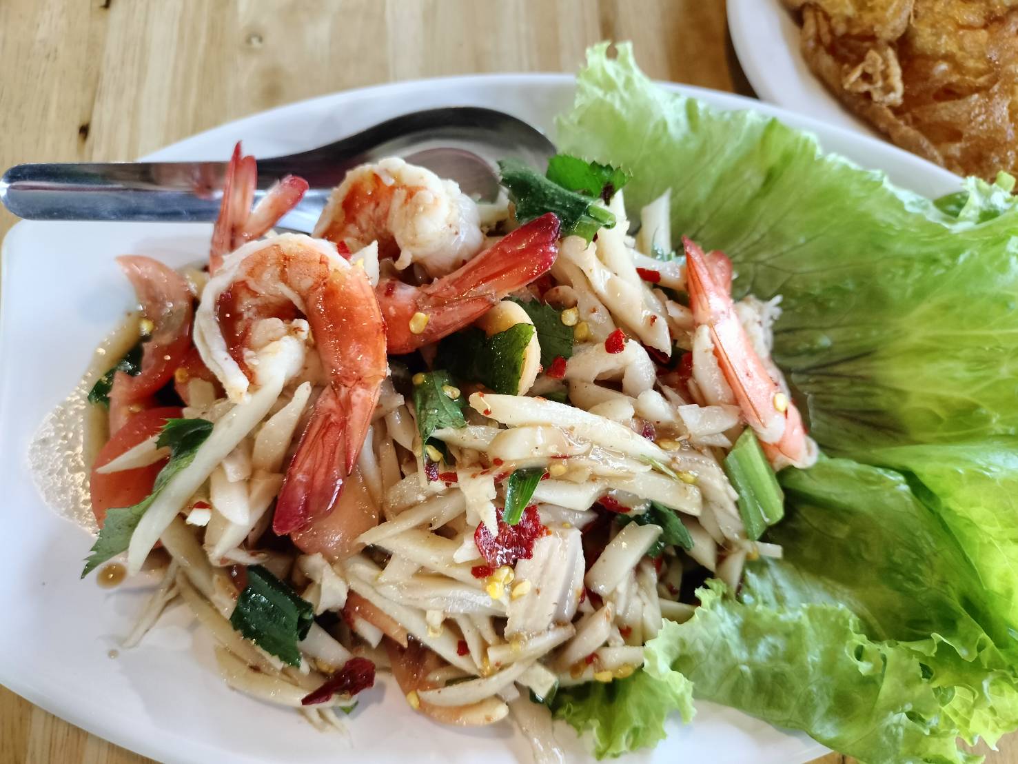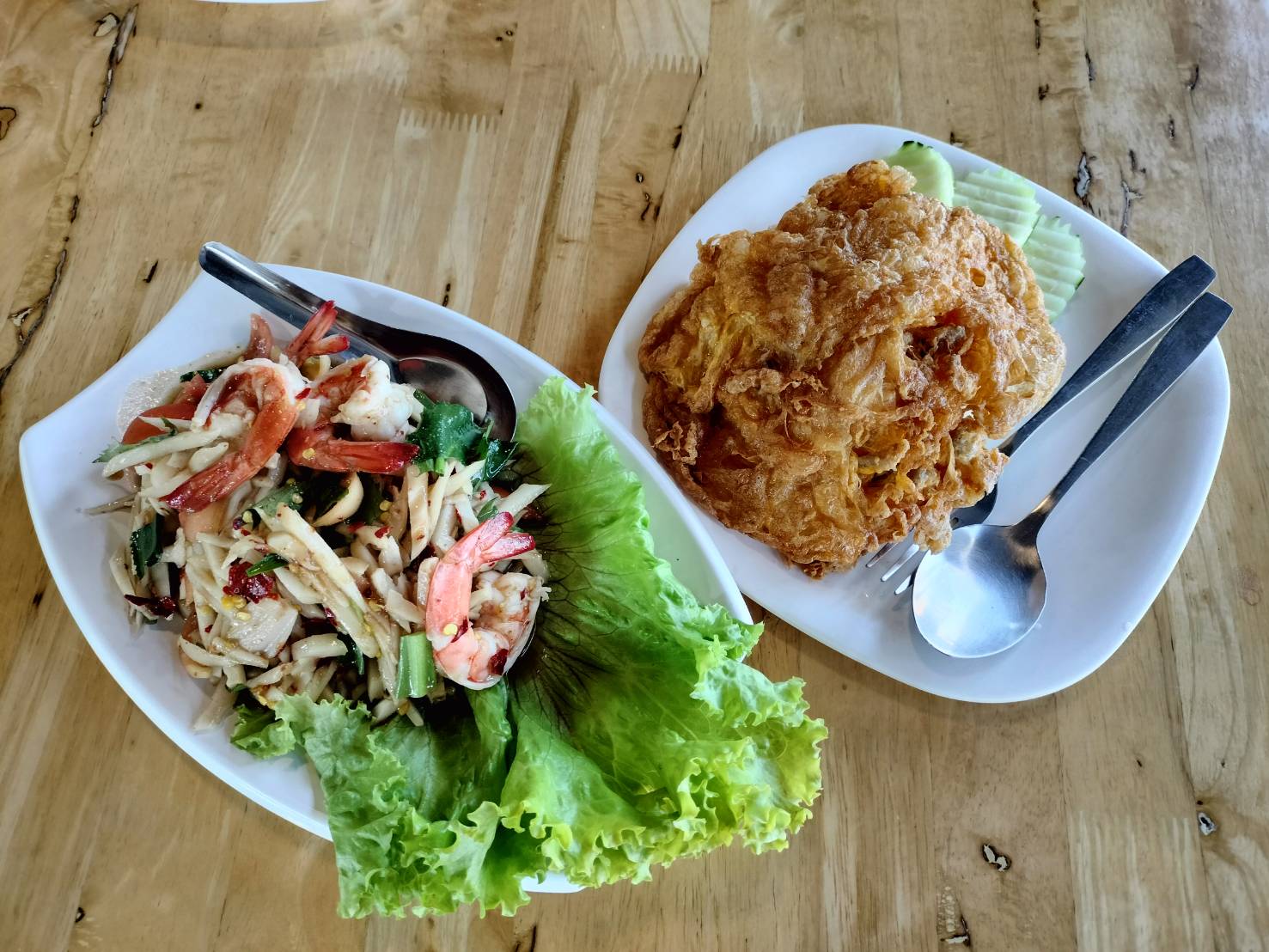 เติมพุงด้วยข้าวไข่เจียว ส้มตำรากบัว และแกงเลียงร้อนๆใส่ผักตู้มๆ