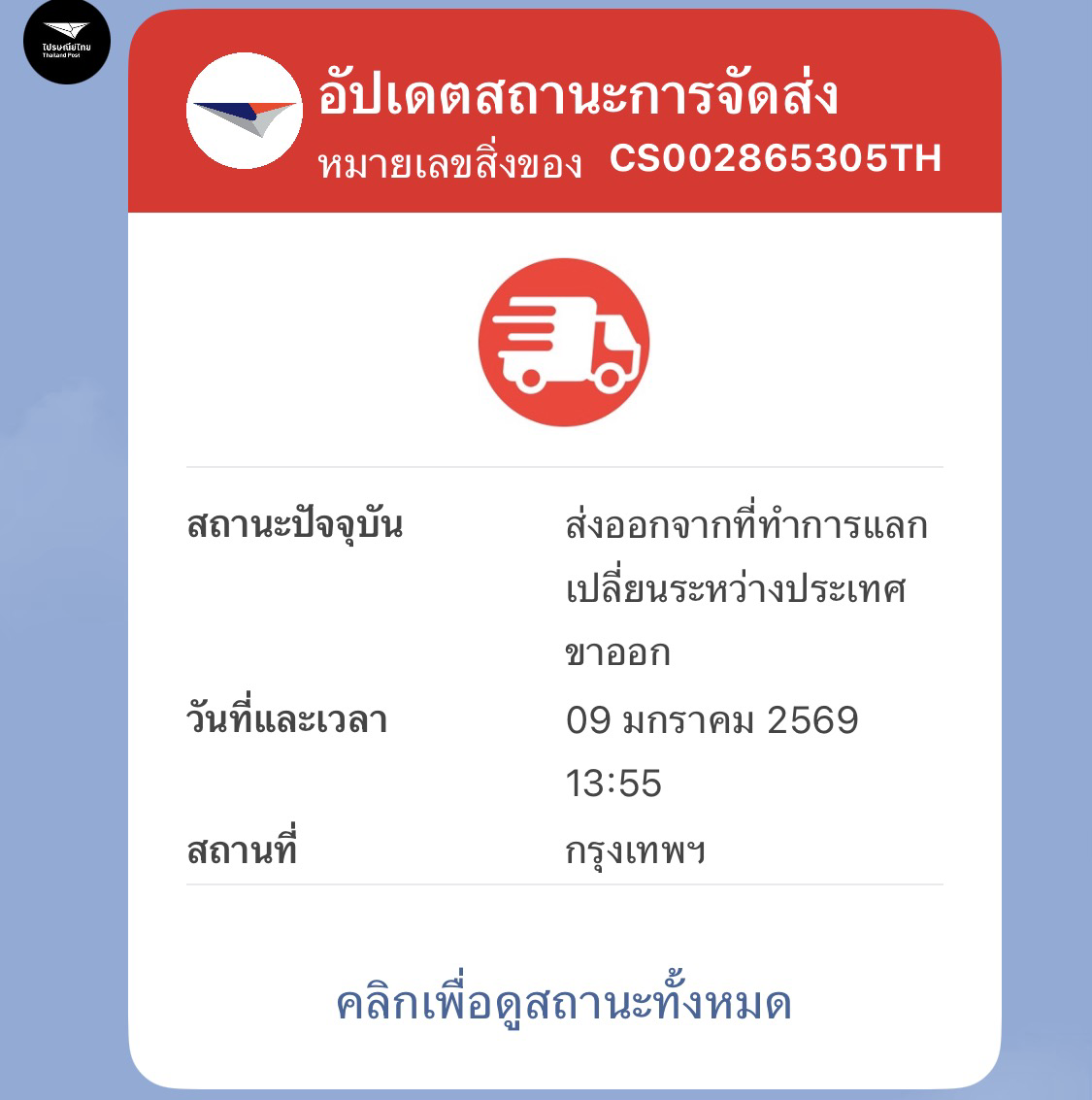 เลขพัสดุค้นหาไม่พบค่ะ ไปรษณีย์ไทย