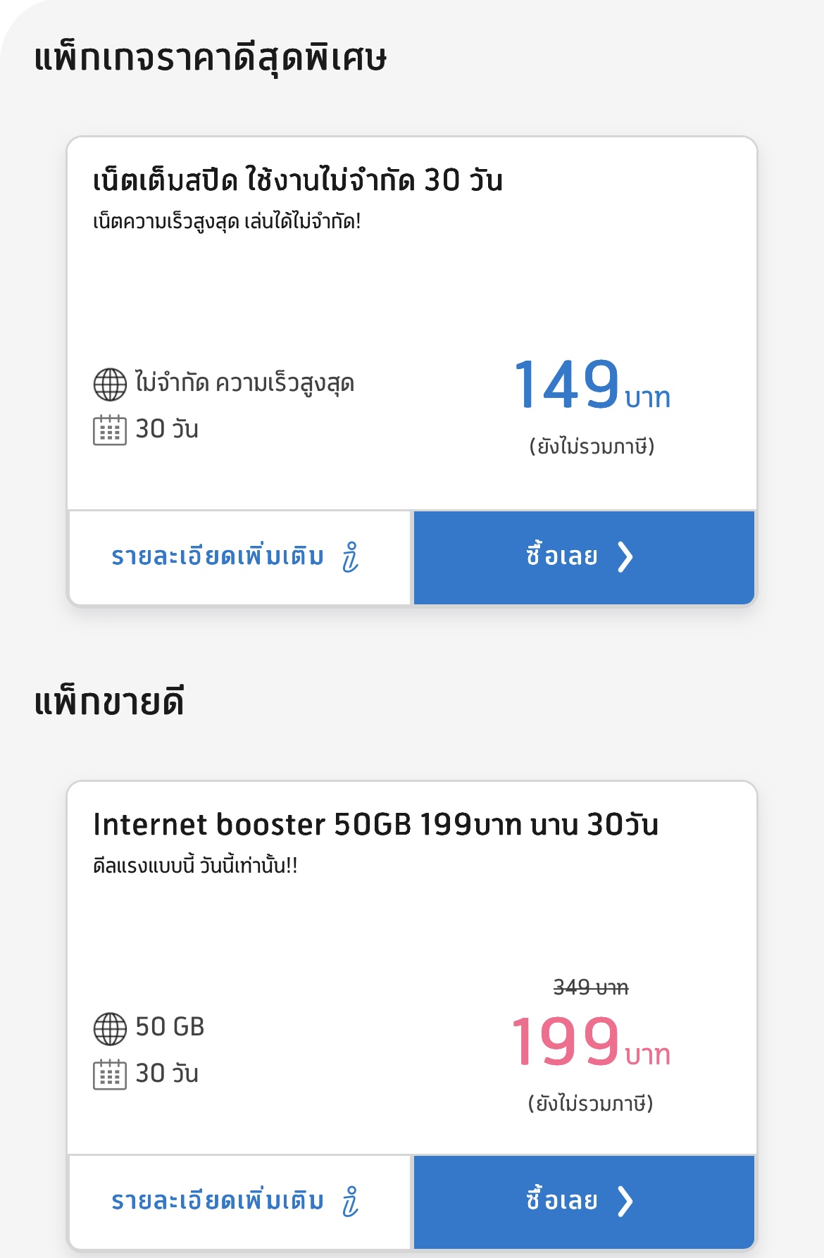 สอบถามเกี่ยวกับแพ็กเกจเน็ตเสริมดีแทค