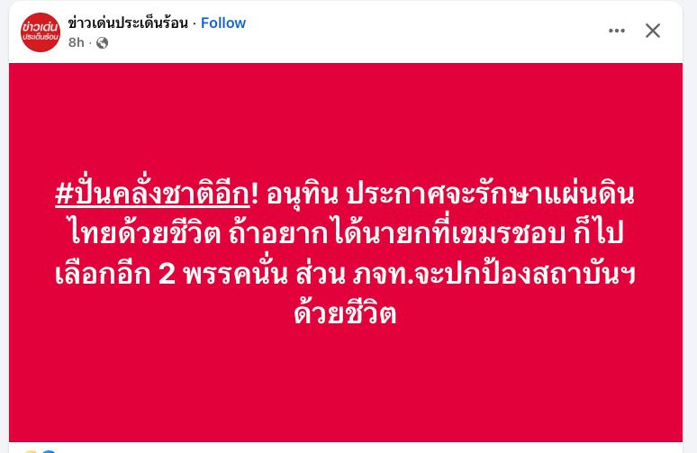 หน้าที่ของนายกรัฐมนตรี คือการเสริมสร้างความรักสามัคคีของคนในชาติ แต่นี่สงสัยจะลืม เลยไปโหนคำพูดของรัฐมนตรีเขมร ทีเคยให้ข่าวเพื่อแทรกแซงกิจการภายในของไทย