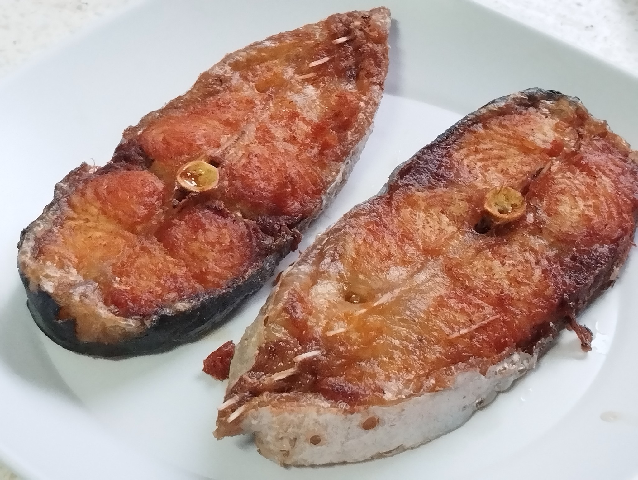 รอบนี้ซื้อปลาตัวใหญ่หน่อย ตัวละหนึ่งกิโลพอดี ราคา 55.- ตัดหัวตัดหางทอดเสร็จลงจาน 10" เกือบล้น