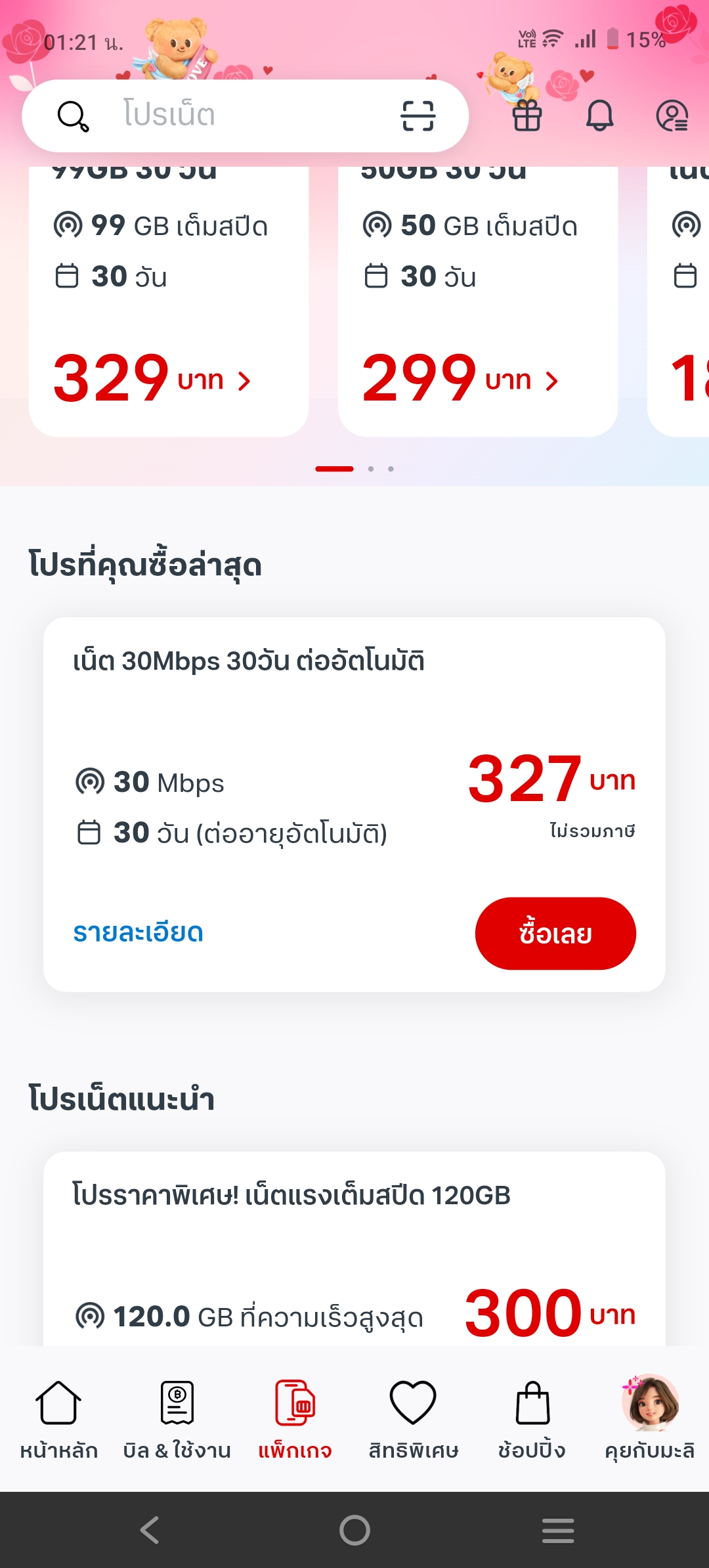 ผมเช็คในแอปทรูมันขึ้นเเพ็คเก็จเสริมอยู่พอเล่นไปสักพักเน็ตเล่นไม่ได้ผมเลยเช็คในแอปแล้วเเพ็คเก็จมันหายไปเลยแล้วมันดันขึ้นให้ผมซื้ออีกรอบเฉยเลย