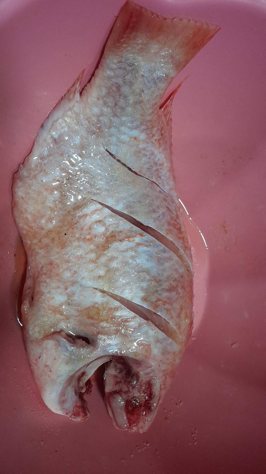 เอาใส้ตรงพุงออกมา ล้างปลาให้สะอาด