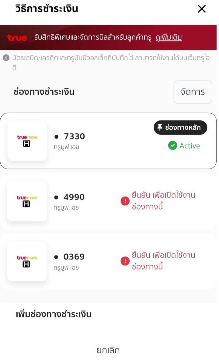 สวัสดีครับ. ● พอดีหาและไม่มีเมนูยกเลิกการชำระเงินของ ,TrueMoveH , TrueVision , TrueID ไม่มีทั้งในส่วนของแอพและเว็ปไซด์ของ TrueID,TrueVision ครับ ● รบกวนยกเลิกแพ็กเก็จของ TrueVision ด้วยนะครับเพราะไ