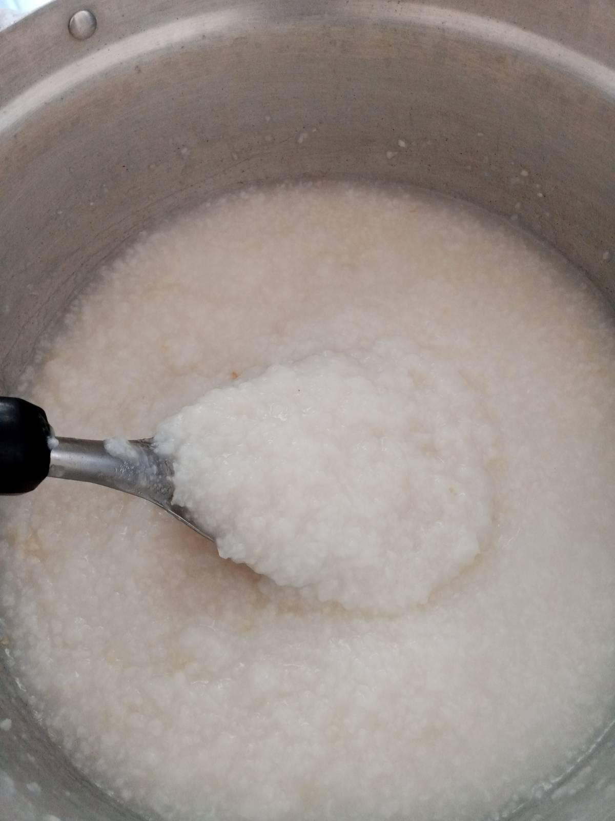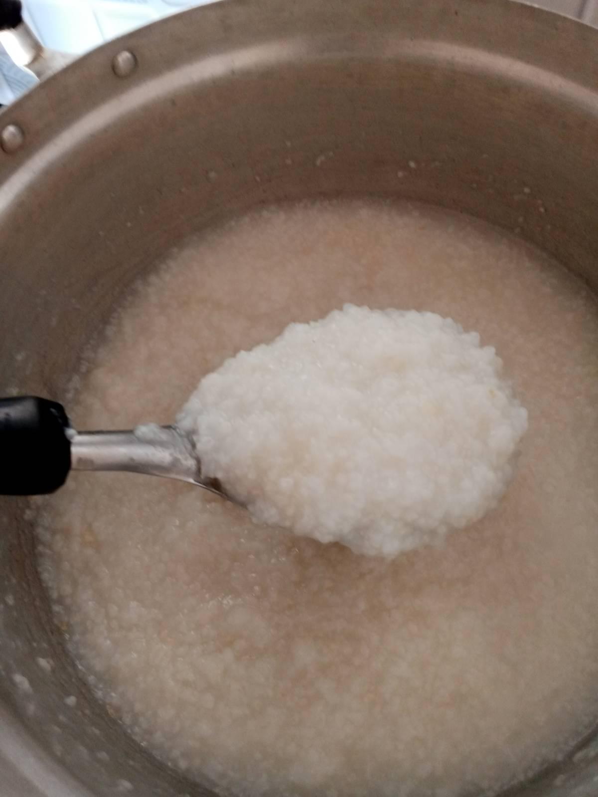 ส่วนนี่ใช้ข้าวหอมมะลิ และ ข้าวเหนียวกำมือนึง ต้มไฟอ่อน เคี่ยวเรื่อย ไป