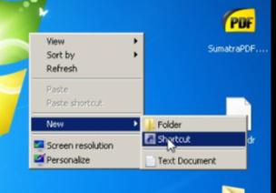 1. คลิกขวาหน้าจอเดสก์ทอป และเลือก new > shortcut