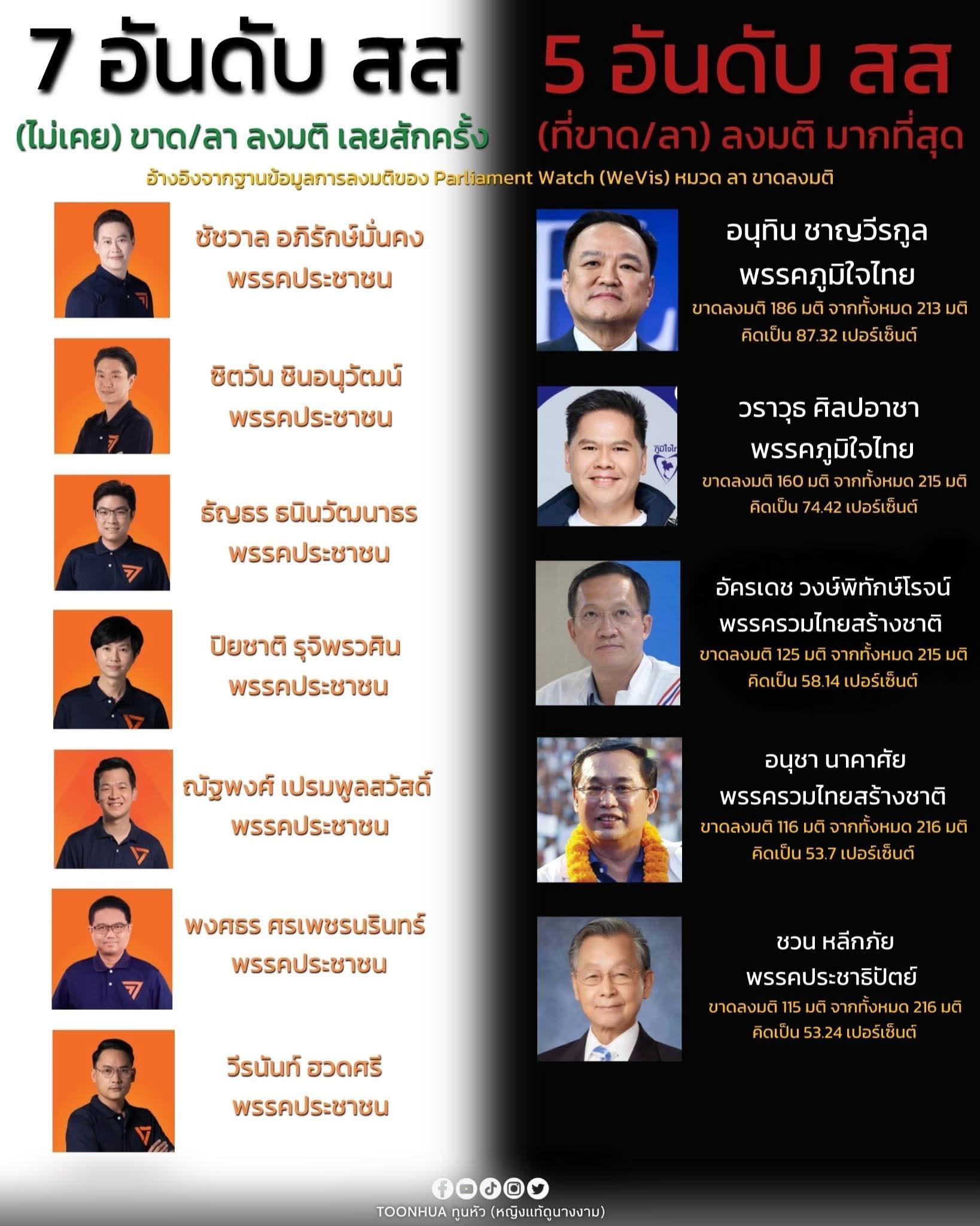 7 สส ที่ไม่เคยขาด/ลา การลงมติ..และ.. 📍5 สสที่ ขาด/ลา แบบชนิดที่ว่าถ้าเป็นบริษัทเอกชนโดนไล่ออกไปแล้ว🙄