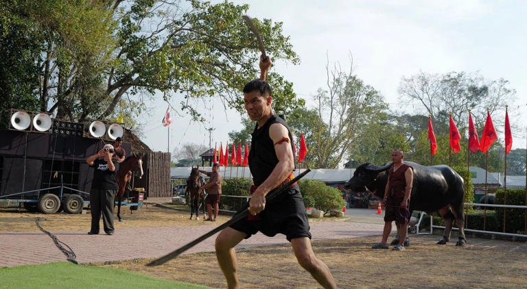 “อ.เจษฎ์” แคนดิเดตนายกฯ พรรครักชาติ โชว์รำดาบบวงสรวงดวงวิญญาณวีรชนชาวบ้านบางระจัน