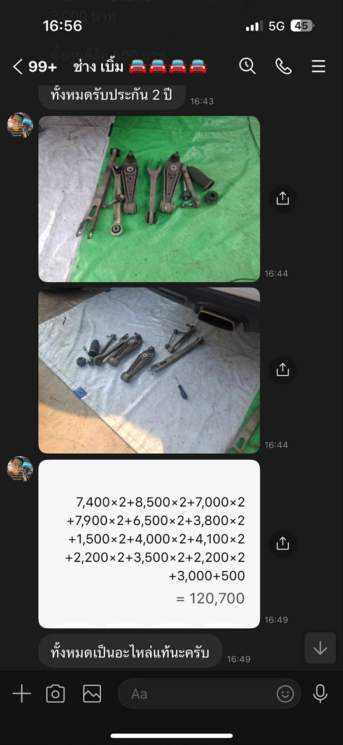 จากการตรวจสอบละเอียด ถอดเช็คพบว่า อะไหล่นอกเหนือจากที่ทางศูนย์ตรวจพบ แล้ว มีอะไหล่ อีกหลายชิ้นทั้งหน้าหลังที่เสื่อมสภาพจากการใช้งานลูกหมากตาย และยางประกบกันโครงต่างๆ เสื่อมและฉีกขาด เสนอเปลี่ยนรายการออกมาตามภาพ 8-9 รายการหลักซ้ายขวา ทั้งหน้าและหลัง เรียกว่าอะไหล่เพิ่มมาอีกเกือบเท่าตัวเลย