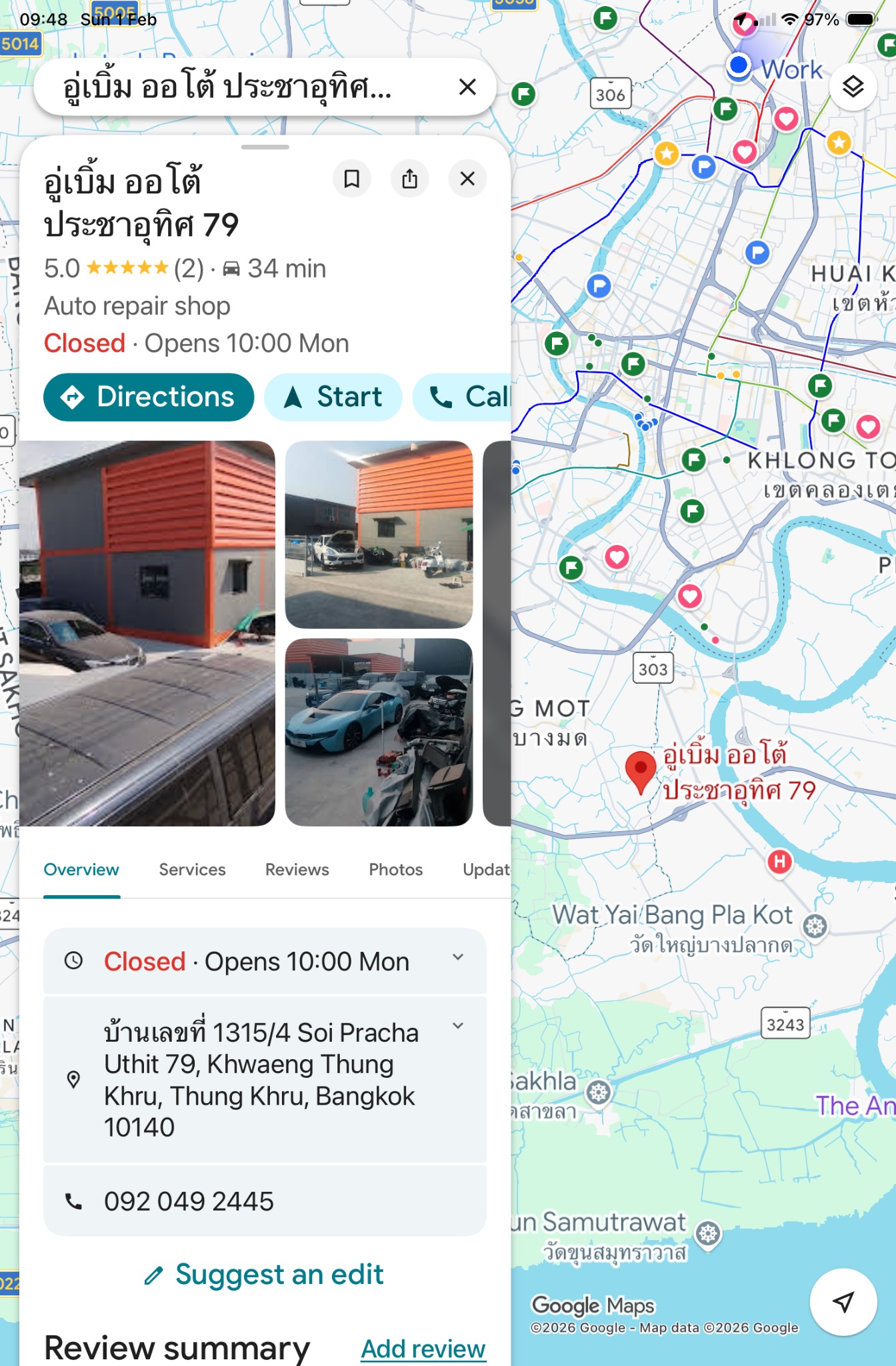 แอบรู้สึกว่ามันค่อนข้างแพงมาก เลยลองปรึกษาเพื่อนๆ ที่ใช้รถใน คลับ porsche มีคนแนะนำมาหลายแห่ง แต่ ที่นึงที่คนแนะนำเชียร์แบบหนักแน่นมาก ว่าดี และราคาดี คือ อู่เบิ้ม ออโต้ ที่ประชาอุทิศ79 แถวพระประแดง