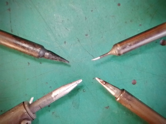 แต่ละด้ามปลายหัวแร้งมีขนาดและลักษณะปลายไม่เหมือนกัน ผมยังมีปลายแบบอื่นๆ ไว้เปลี่ยนให้เหมาะกับงาน ด้านล่างซ้ายมือเป็นปลายของ Hakko Red ใช้งานมา 3 ปีกว่าแล้วสภาพยังดีแทบจะไม่สึกหรอเลยเพราะผมเปลี่ยนวิธีใช้ตามข้อความข้างต้น เมื่อใช้งานถูกวิธีก็ทำให้อายุการใช้งานยาวนานยิ่งขึ้นประหยัดเงินในกระเป๋าได้ครับ