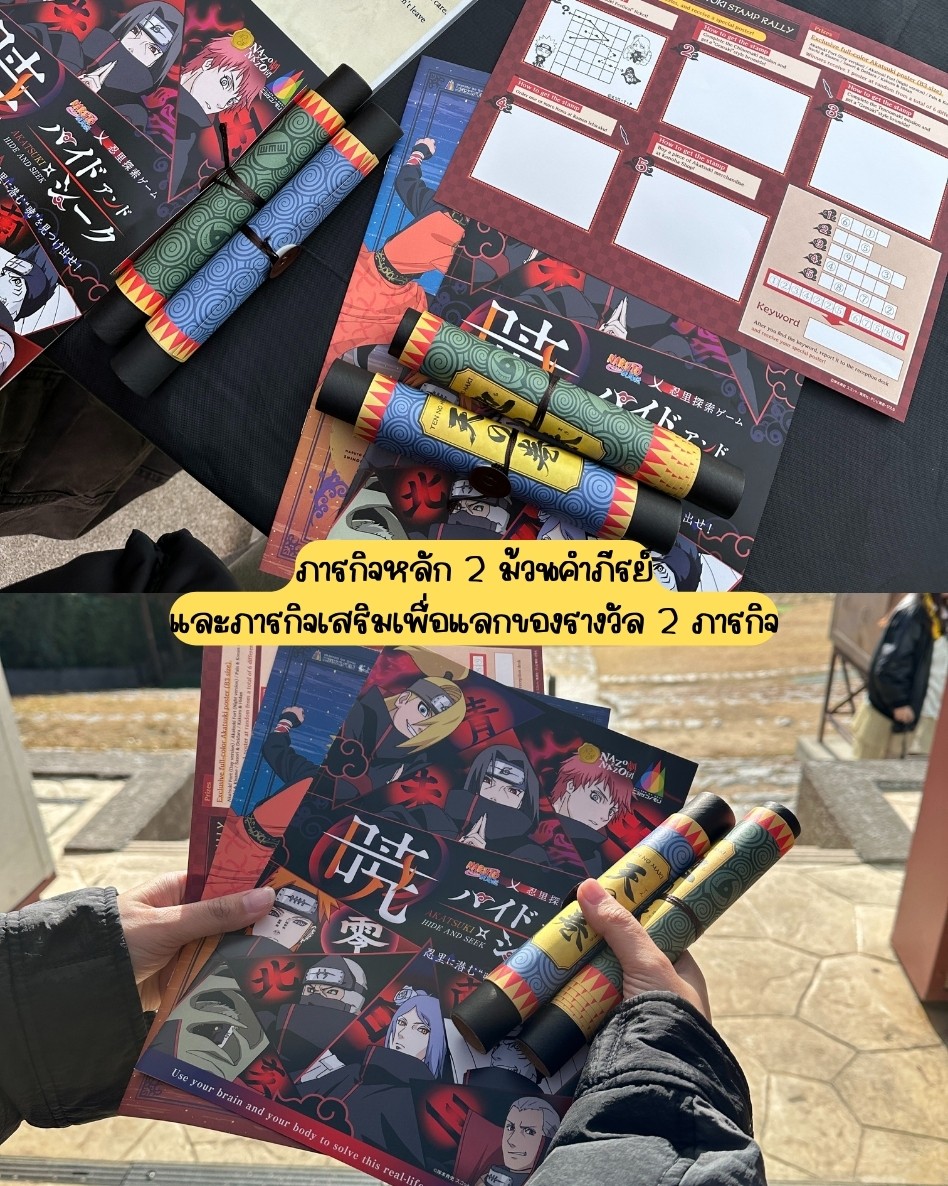วันนี้เราซื้อเป็นตั๋ว VIP ที่จะได้เลือกกระเป๋า 1 ใบด้วยค่ะ มีกระเป๋าน้ำเต้าทรายของกาอาระ และกระเป๋าโหมดเซียนของนารูโตะ เราไปกับแฟนก็เลือกคนละใบไปเลยจ้า เค้าก็จะมีม้วนคัมภีรย์เพื่อใช้ทำภารกิจไปแลกของเพิ่มเติม