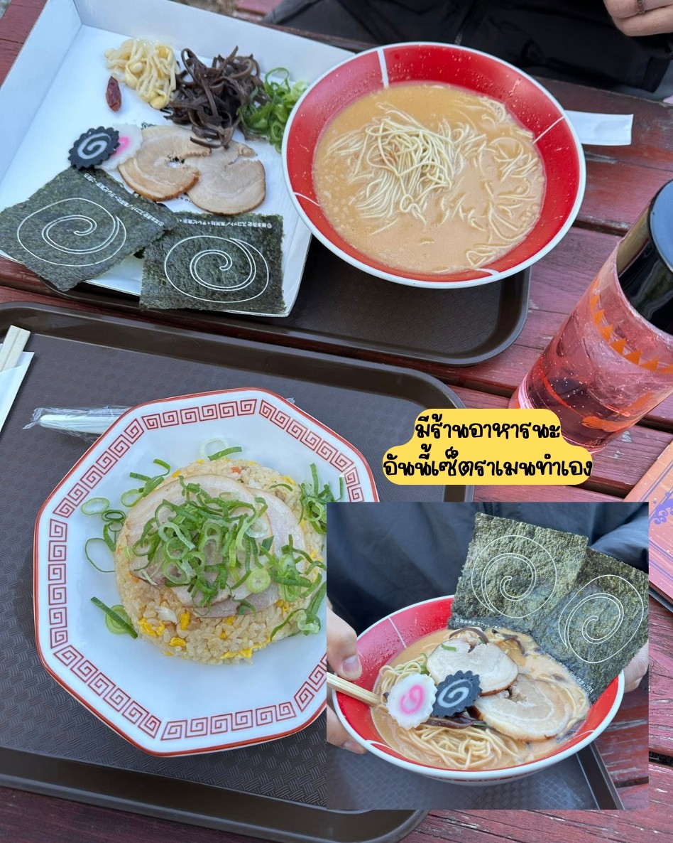 แล้วเค้าก็จะมีโซนร้านอาหารนะคะ เป็นร้านราเมนเล็ก ๆ มีเครื่องดื่ม ราเมน ข้าว ขนมให้ครบบบ ! แล้ววิทานข้าวคือฟินไม่ไหว วิวสวย อากาศดีมากค่ะ วันนี้เราเลือกมาเป็นเซ็ตราเมนแบบตกแต่งเอง เพราะจะเอาขวดน้ำของที่นี่ ฮ่าาาา แล้วก็ซื้อข้าวผัดจานเล็กมาอีก 1 อิ่มกำลังดีเลย รสชาติดีน้าาา