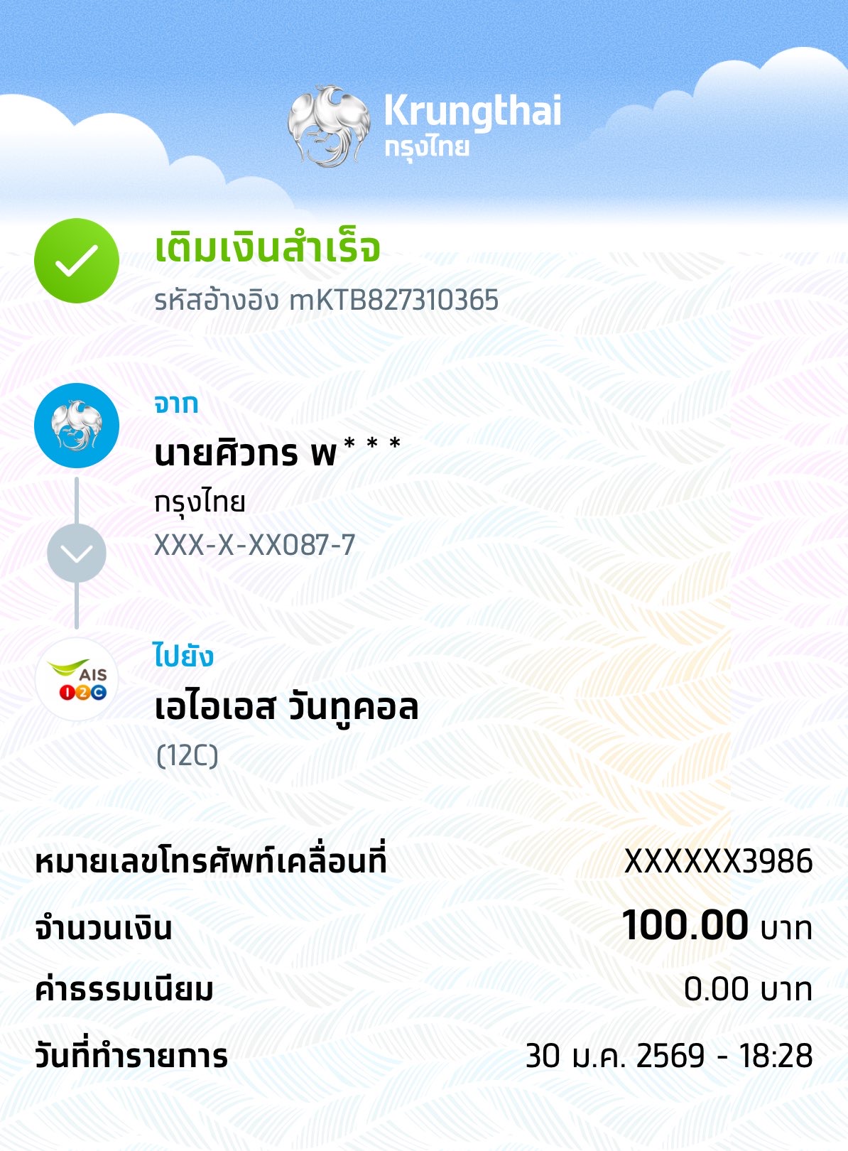 ธ.กรุงไทยจ่ายบิล หักเงินแล้ว แต่ไม่สำเร็จ
