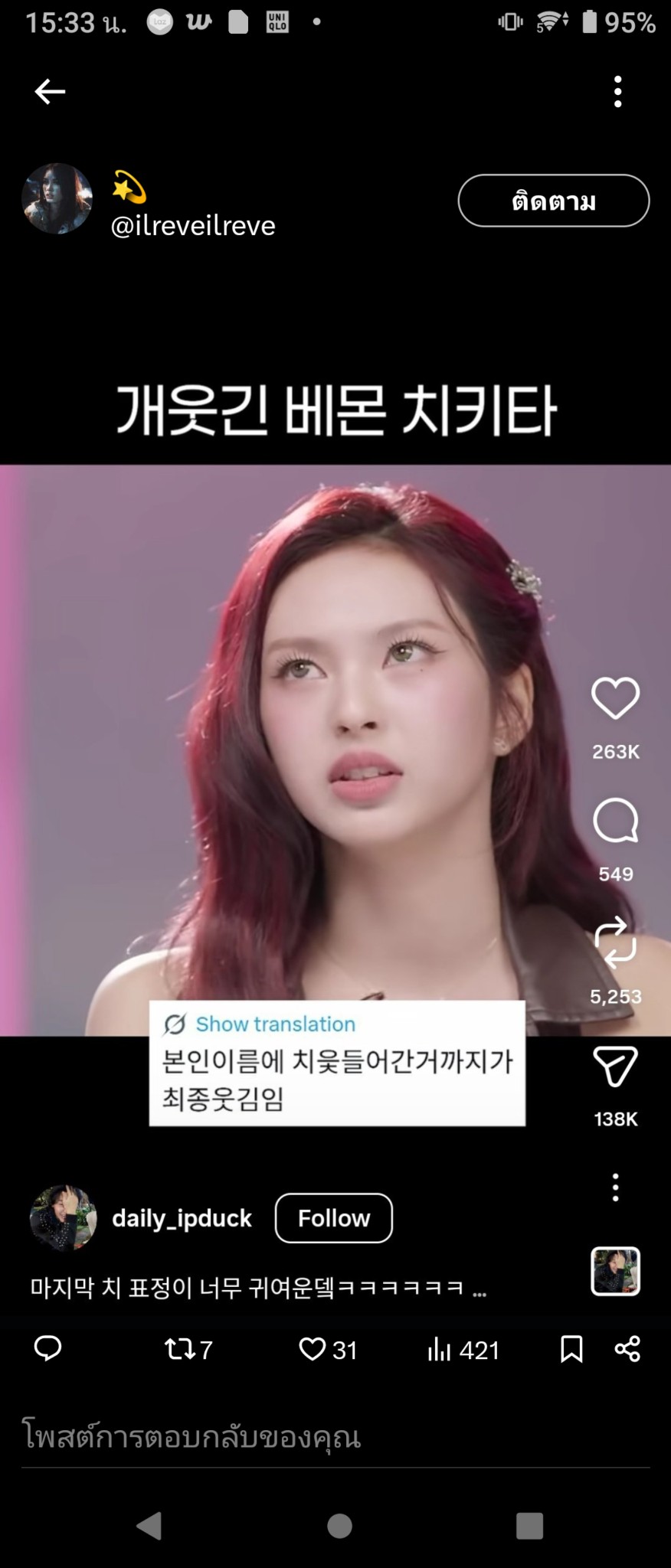 CHIQUITA BABYMONSTER กำลังเป็นกระแสไวรัลอีกครั้งในหมู่เนติเซนเกาหลีเป็นควันหลงจากไปร่วมรายการ LeeMujin Service คอมเมนต์ของ