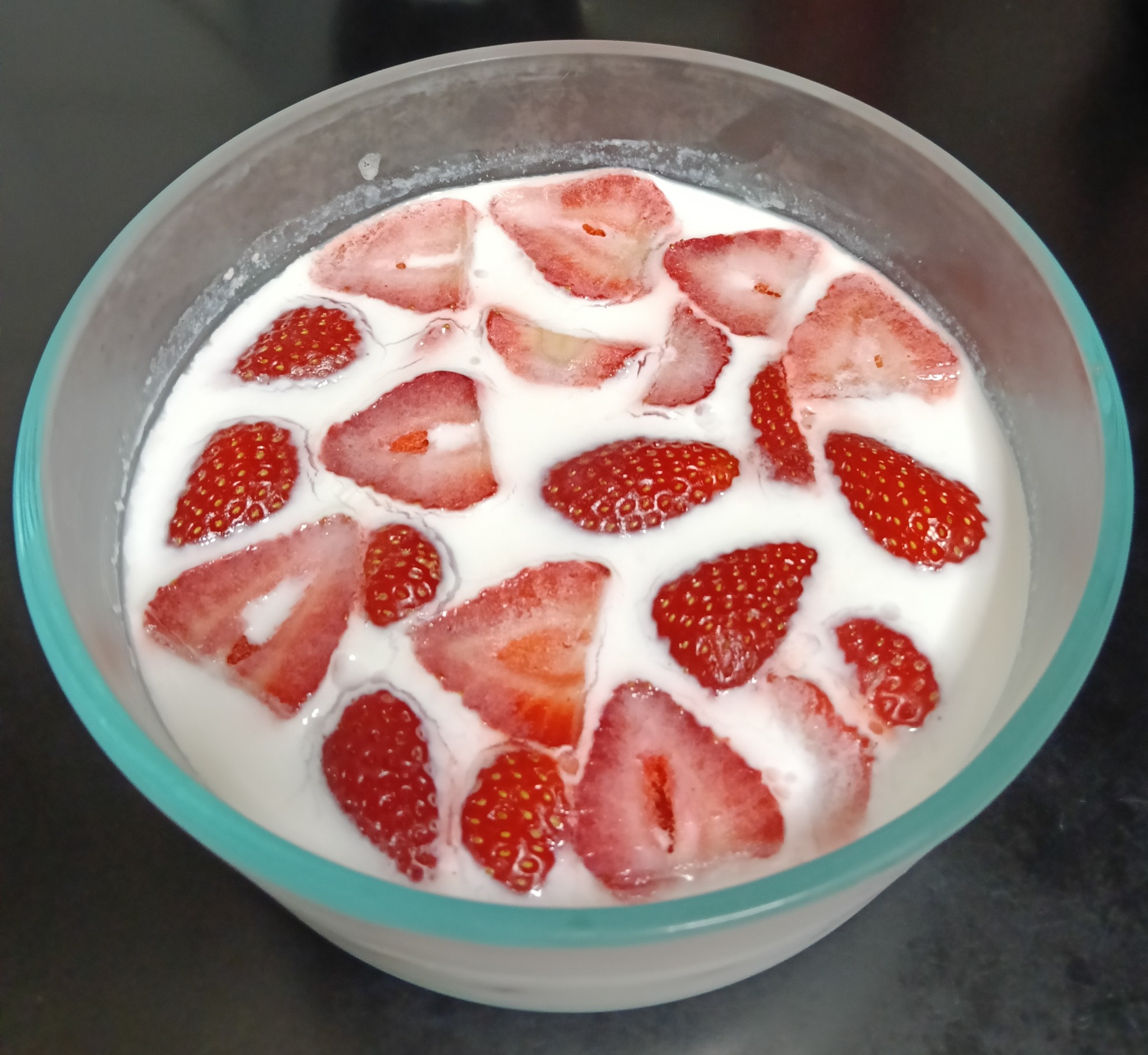 - ใส่สตรอว์เบอร๋รี่ลงไป