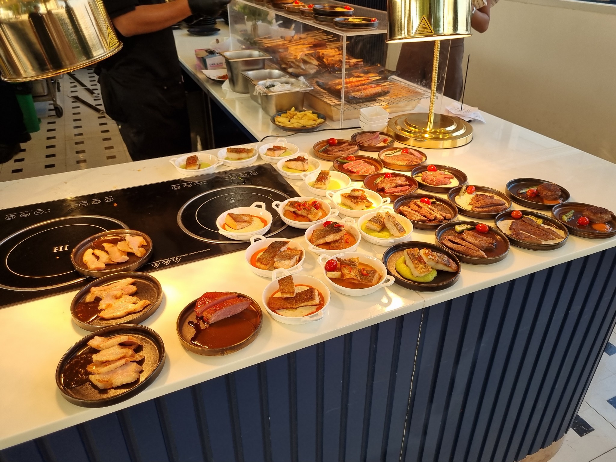 อีกมุมนึงของเคาน์เตอร์เหลี่ยม เป็นพวกจานเนื้อ ทอดย่าง ทั้งหลายแหล่ ตรงนี้คนจะหนาแน่นสุดแล้ว ระวังของหกในขณะเดินตักให้ดีๆครับ