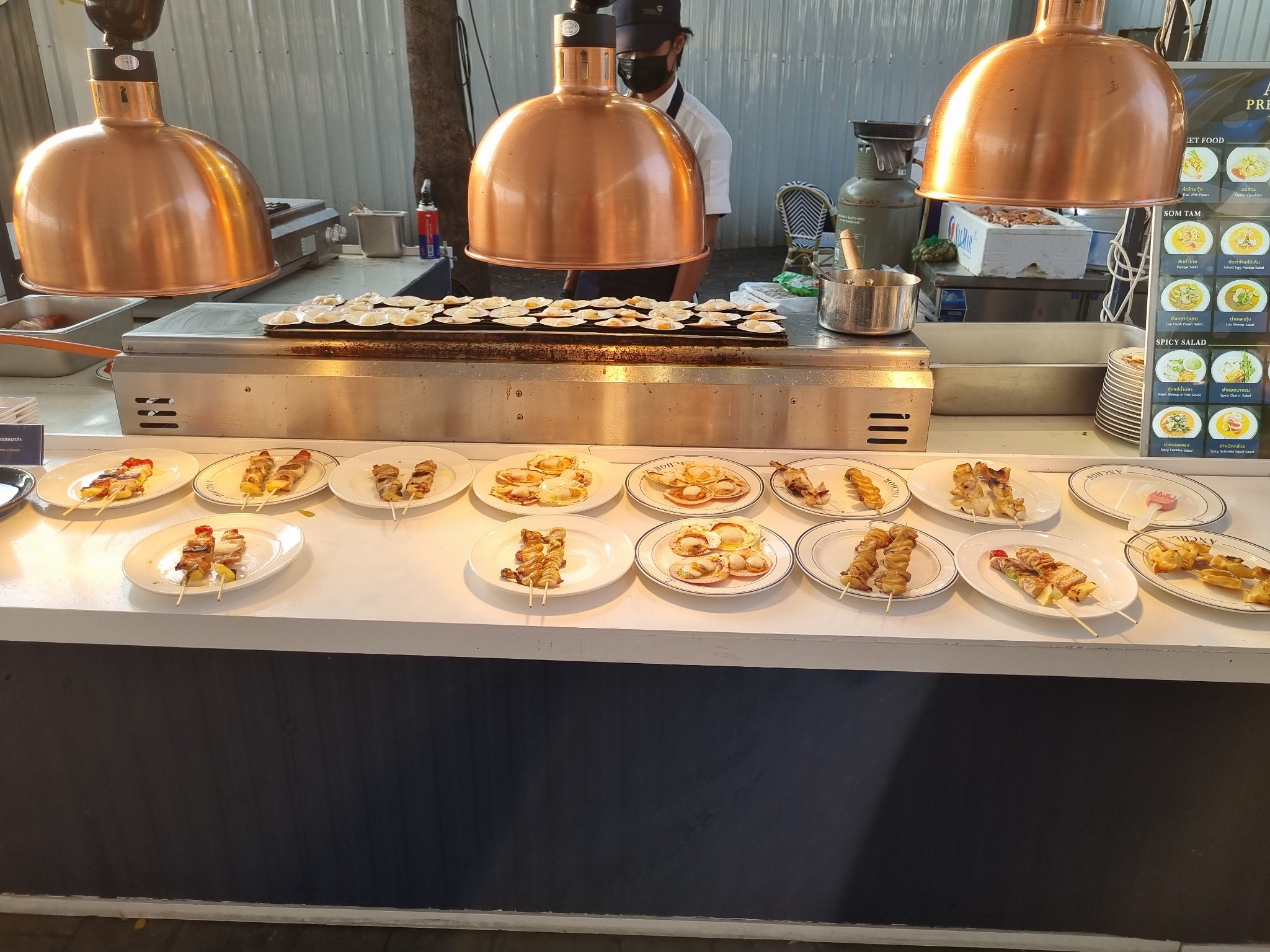 ยังไม่หมดครับ มีมุมด้านนอกอีก โซนด้านนอกนี้ จะเป็นพวกอาหารทะเลย่าง ผัด และทอด คนเยอะเลยถ่ายมาให้ดูยั่วๆแค่นี้พอ