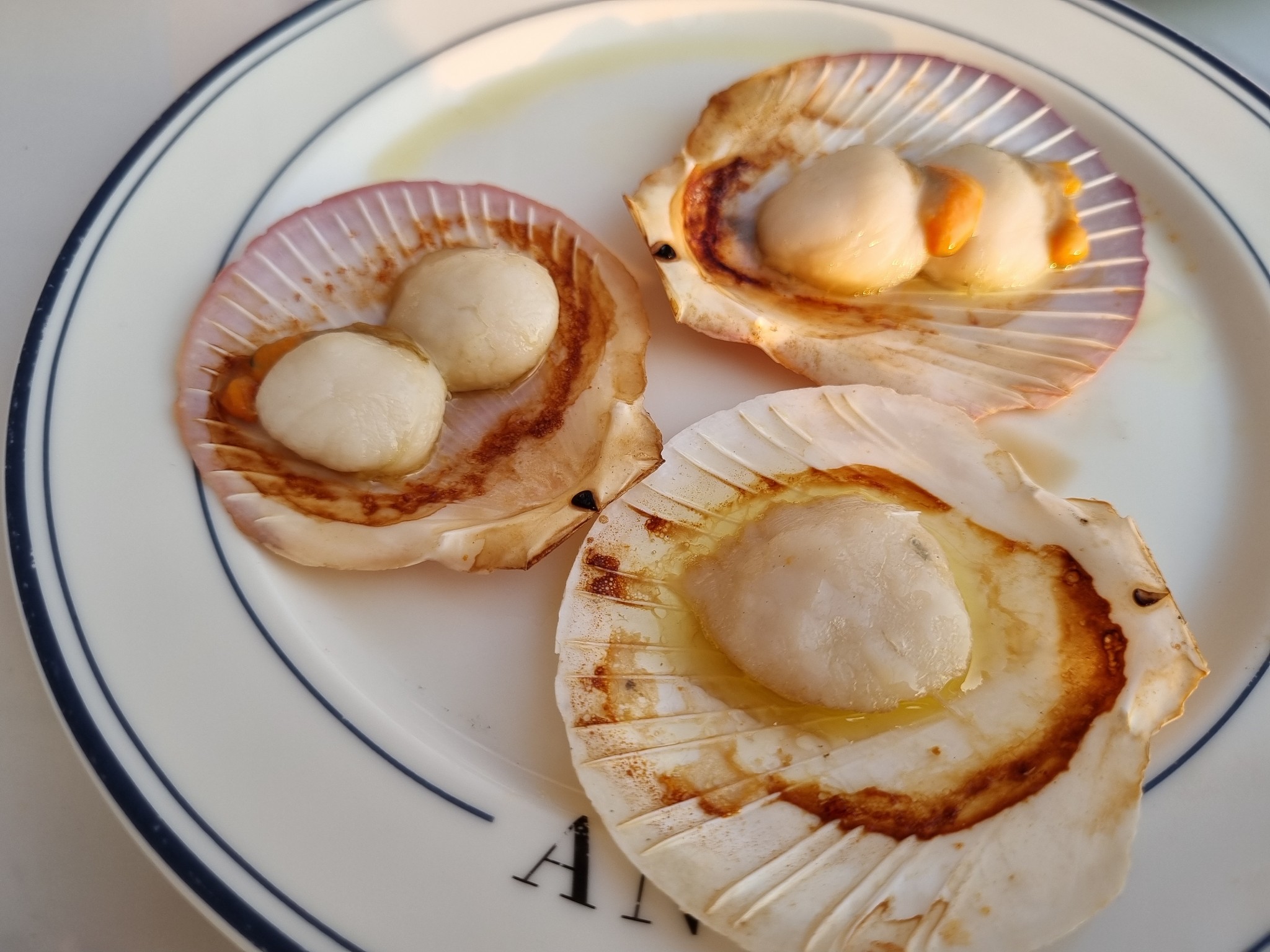 หอยเชลล์ย่างเนย เนื้อนิ่มกรุบ แตกเป็นเส้นในปาก รสชาติเนยเต็มๆ หอมมาก