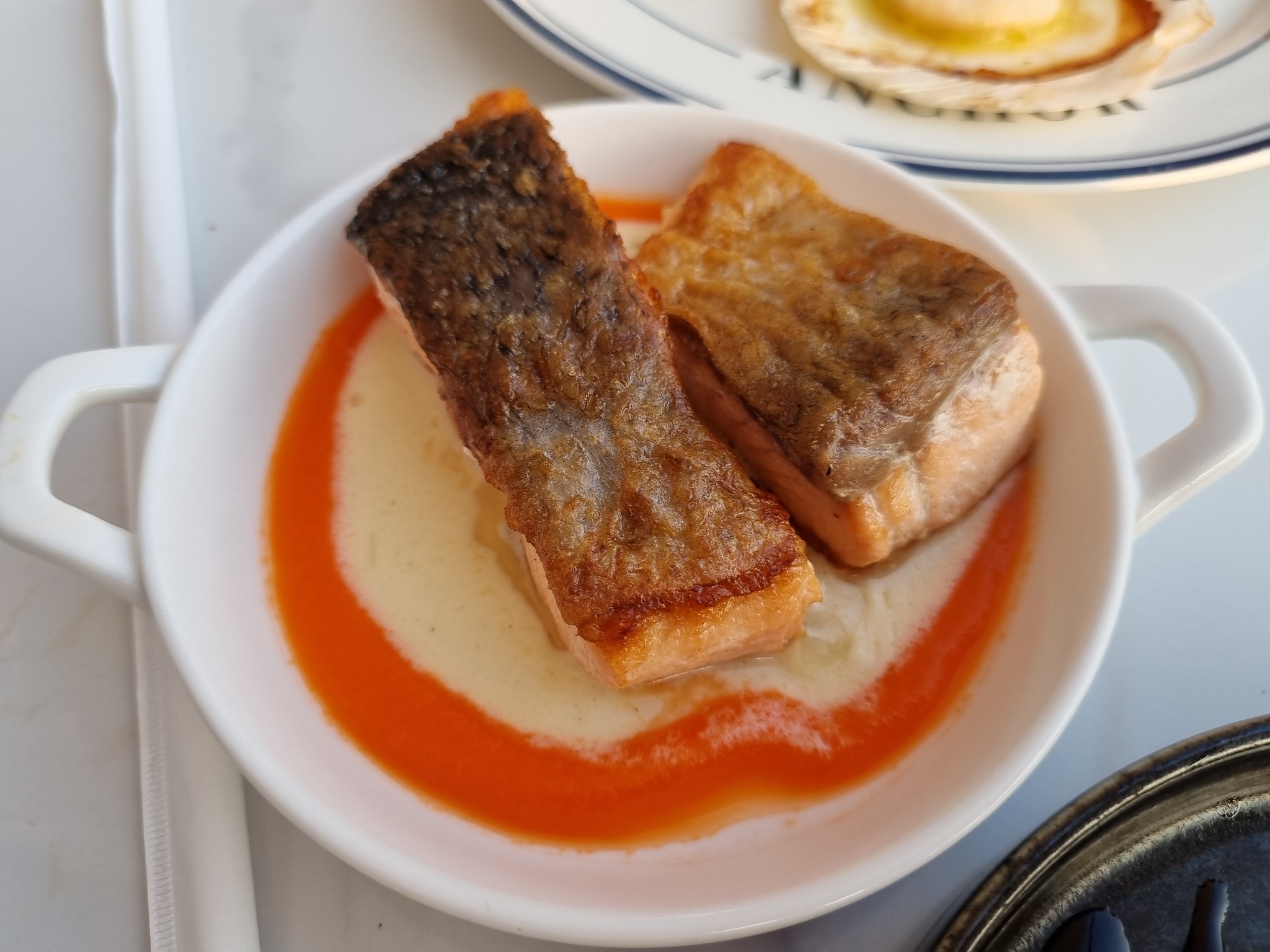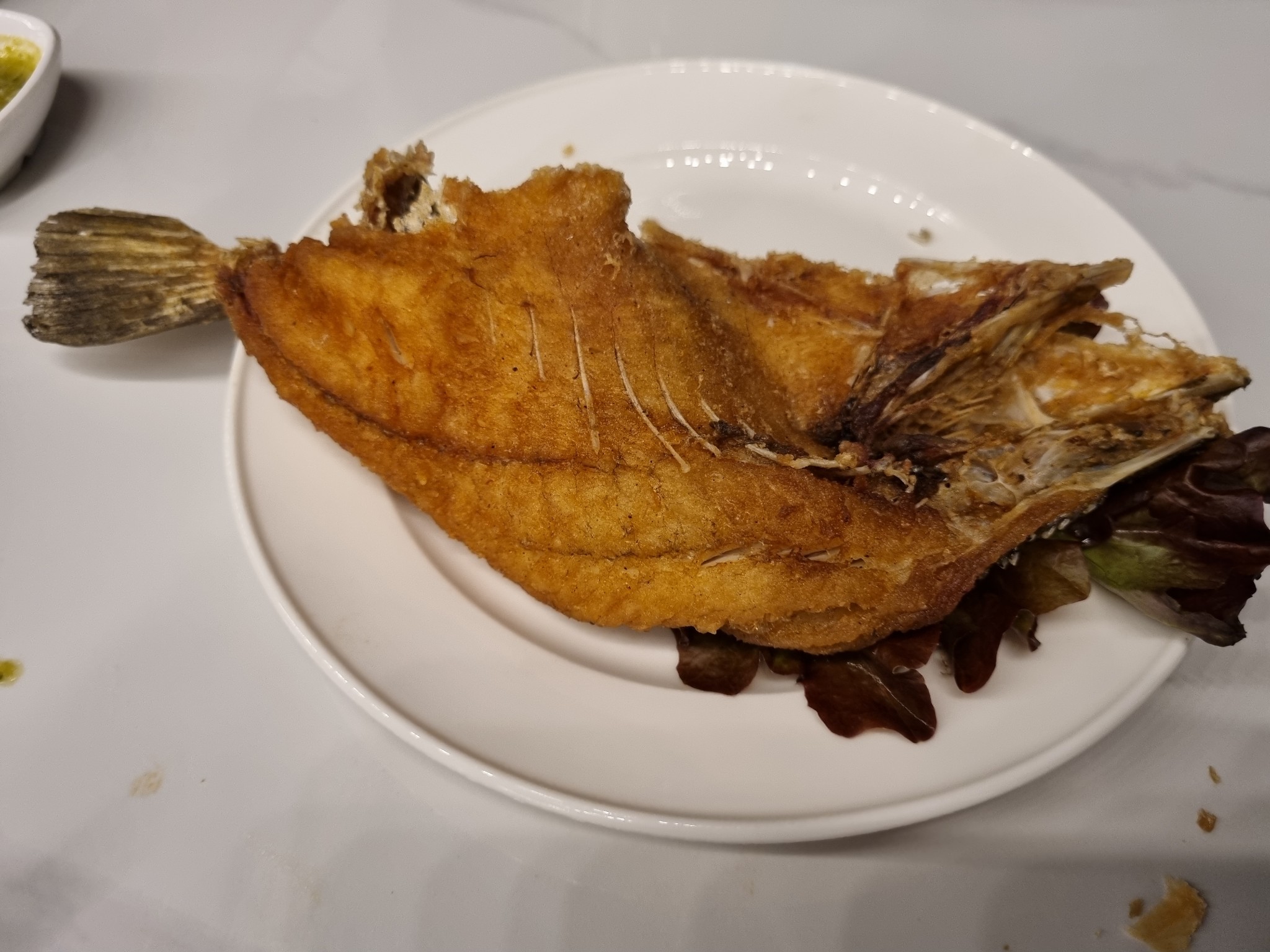 เนื้อปลานุ่มฟู หนังค่อนข้างเหนียวมากอยู่ มีขนมปังกรอบมาซับซอสหวานๆทำให้รสชาติลงตัวยิ่งขึ้น