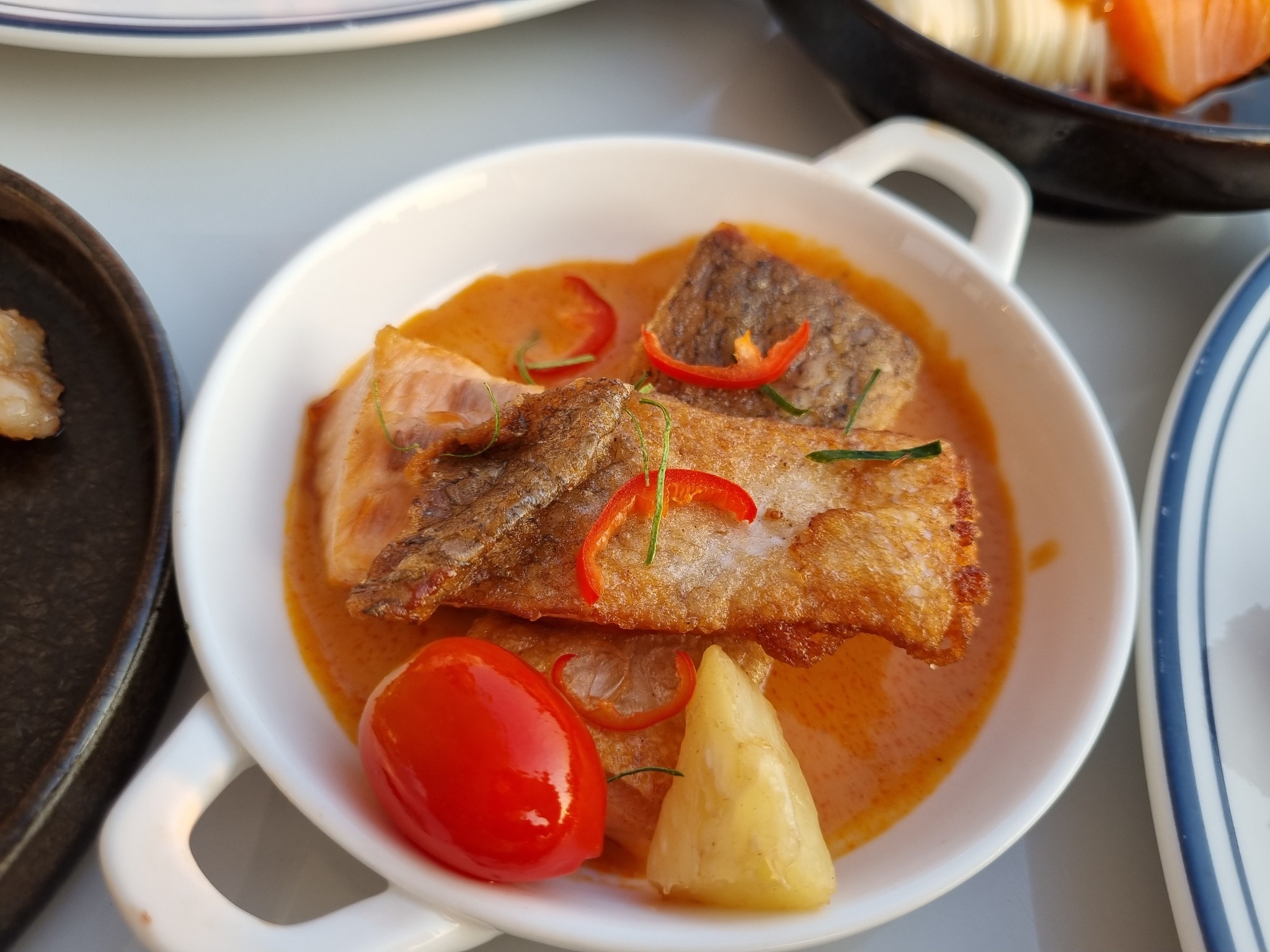 แซลมอนซอสฉู่ฉี่ ปลาเค็มเหมือนเดิม แต่เพิ่มความหอมนวลเหมือนแกงเขียวหวานของซอสฉู่ฉี่ ดีขึ้นเยอะเลย