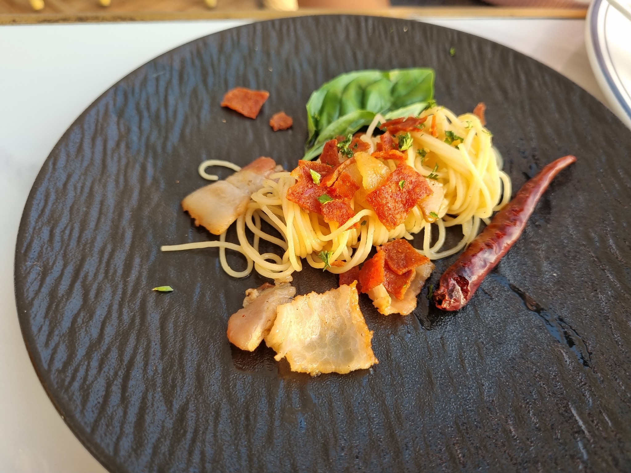 อันนี้คือจานเส้นที่สั่งมาครับ คาเปลินีพริกกระเทียม เส้นหมี่เรียวเล็ก หอมน้ำมันและพริกกระเทียมแสบๆปาก รวมๆคืออร่อยมาก