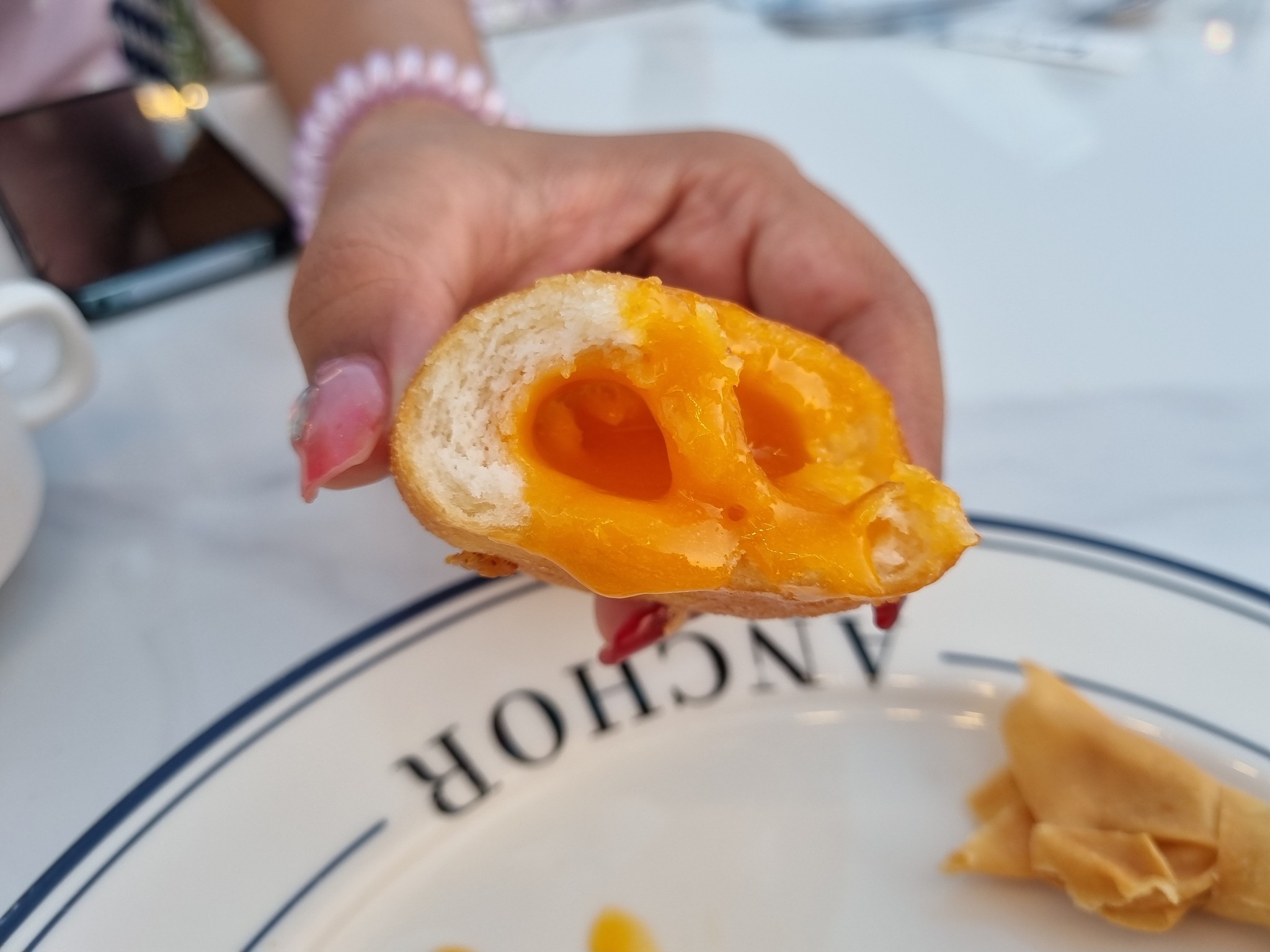 และก็ซาลาเปาทอด แซมมาด้วย เนื้อครีมข้นไข่เค็มและหวานครีมอบ เยิ้มๆเลยครับทั่น