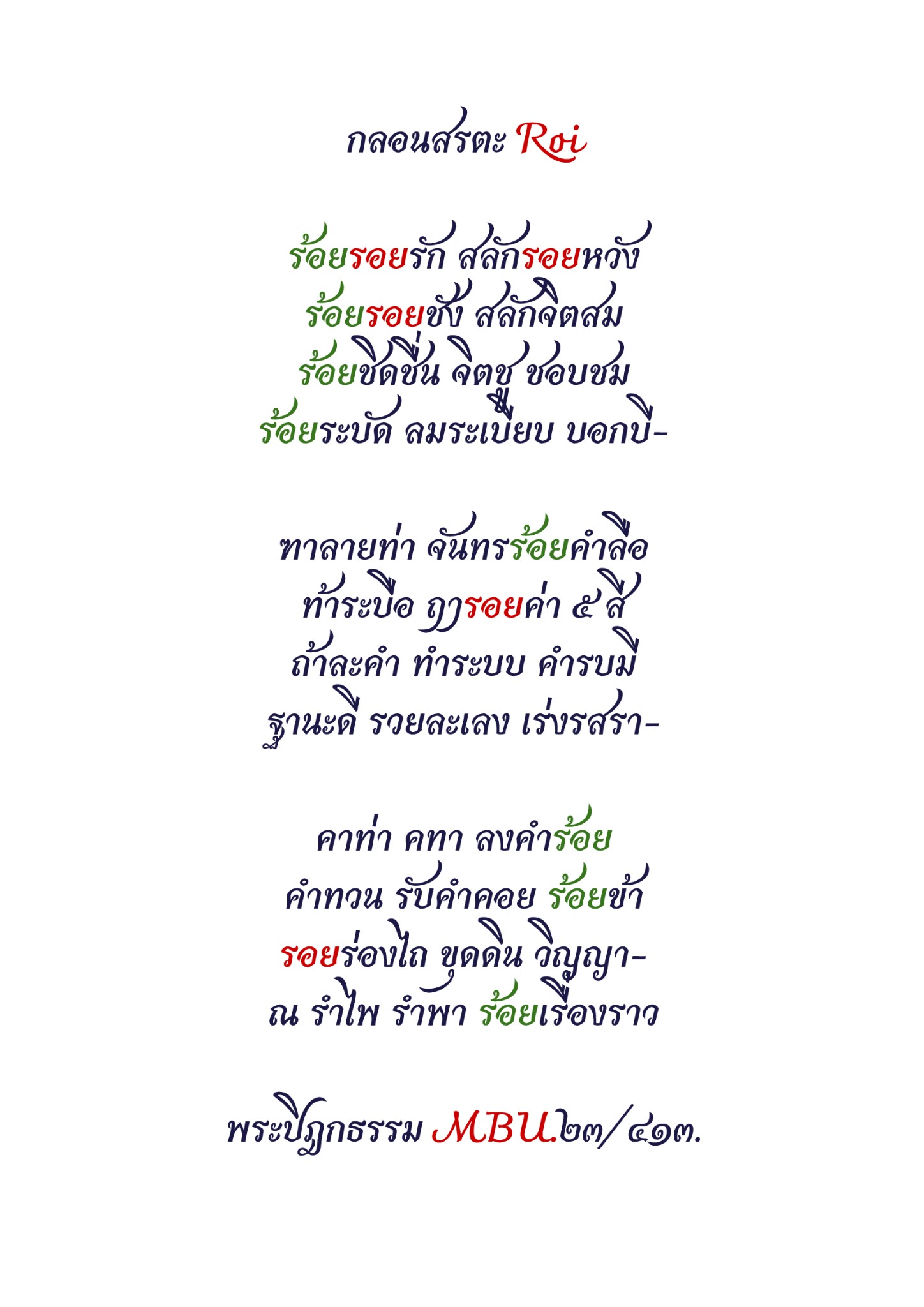 "แปลกเอ๋ยแปลกใจ"ไฉนหนาไม่เคยพบ เห็นหน้า แม้เพียงหน เพียงอักษร กลอนพา ช่างน่ายล คล้ายถูกมนตร์ ดลใจให้คำนึง เพียงแค่อ่าน วลี ที่ส่งถ้อย ด้วยน้ำคำ เรียงร้อย พ