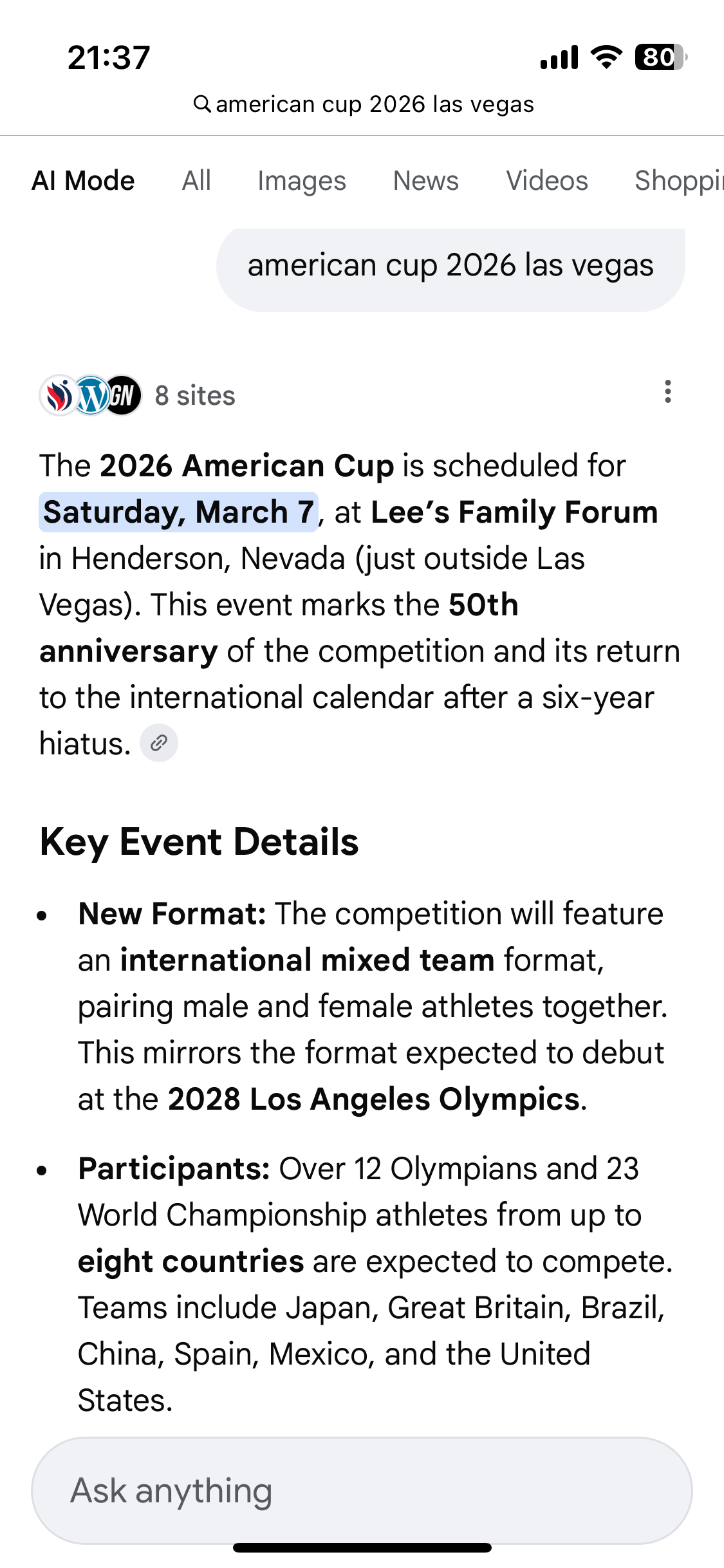 รายการ American Cup 2026 ในปีนี้จะเป็นการครบรอบ 50 ปีของการแข่งขัน ซึ่งในปีนี้จะจัดขึ้นที่เมือง Las Vegas รัฐ Nevada โดยจะมีชาติชั้นนำเข้าร่วมอยู่ไม่น้อยครับ ถือได้ว่าน่าติดตามรับชมทีเดียวครับ (ไม่แน่ใจว่าจะมีการถ่ายทอดสดทาง YouTube หรือเปล่านะครับ แต่ว่ามีการถ่ายทอดสดผ่านช่อง NBC ของอเมริกาแน่นอนครับ 😂)