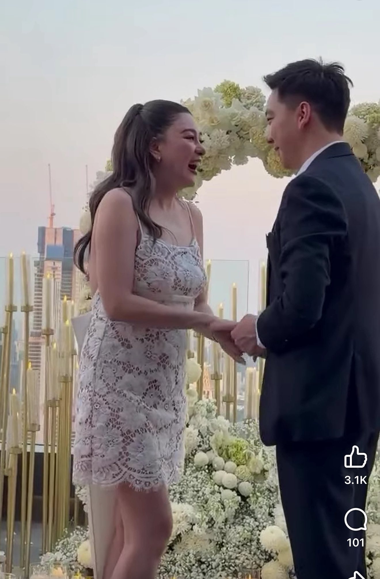 ข่าวดีใกล้ช่วงวาเลนไทน์ แสดงความยินดีกับ โอ๋ ภัคจีรา หลังแฟนหนุ่มรุ่นน้อง เบียร์ สรณัฐ คุกเข่าขอแต่งงาน บรรยากาศสุดโรแมนติก กลางดาดฟ้าโรงแรมหรู