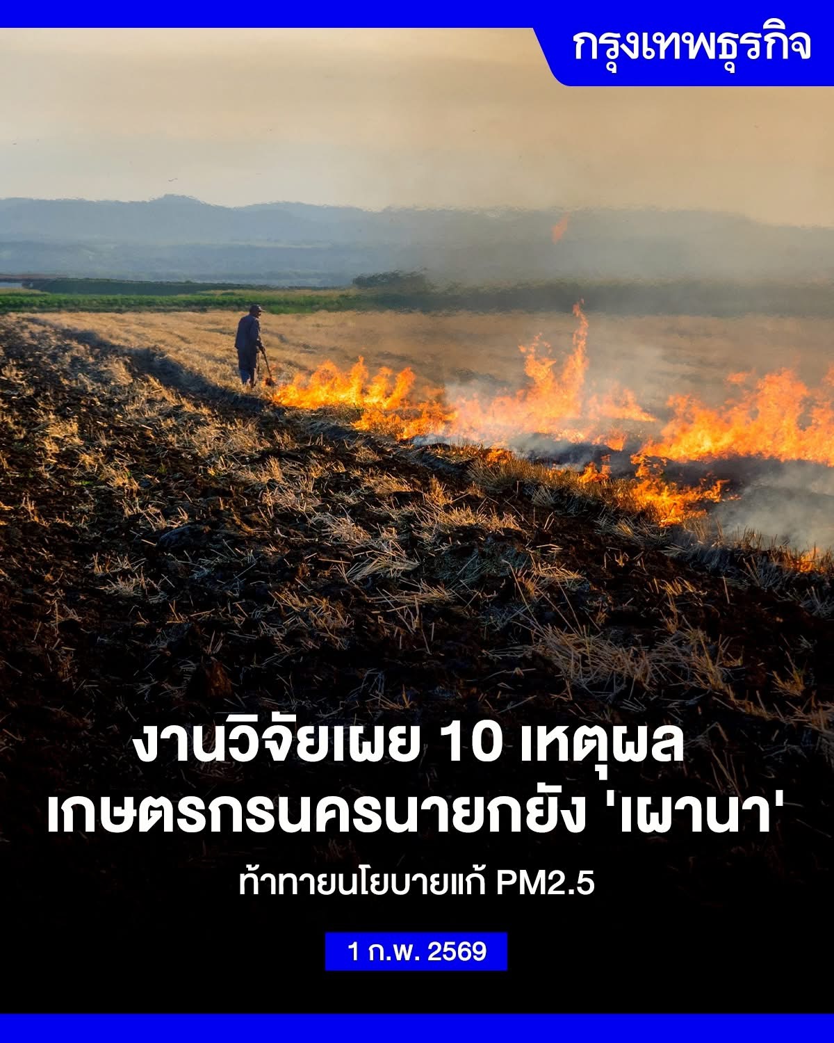 งานวิจัยเผย 10 เหตุผล เกษตรกรนครนายกยัง 'เผานา' ท้าทายนโยบายแก้ PM2.5