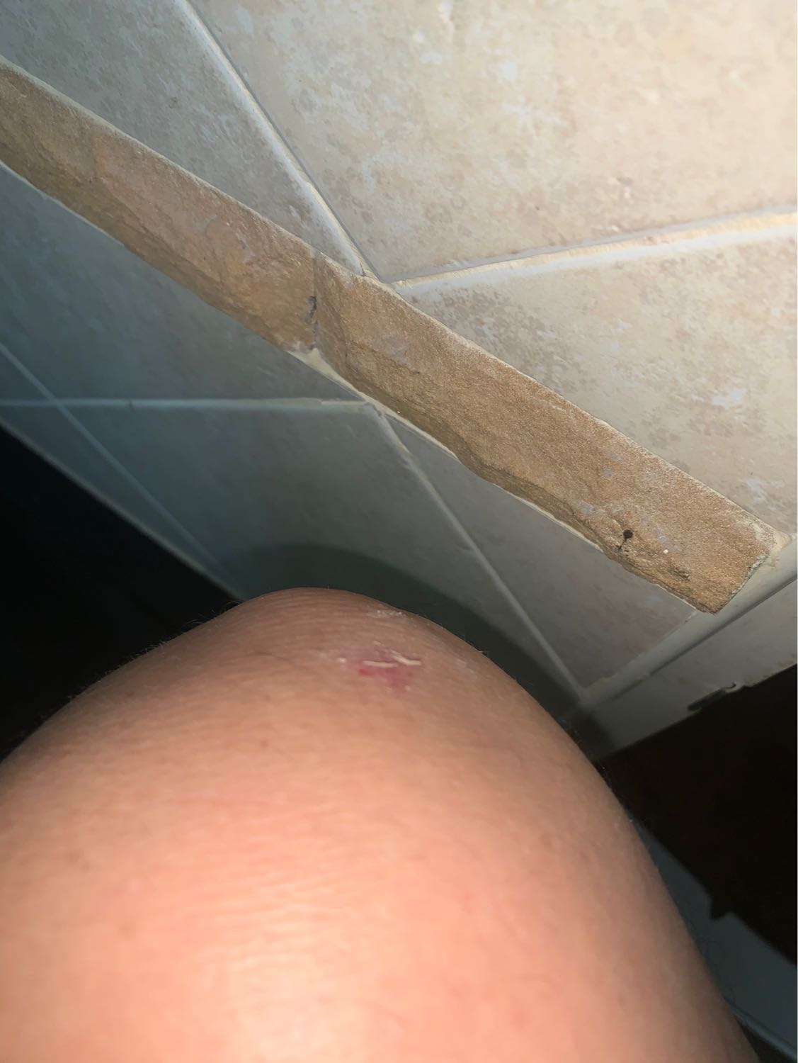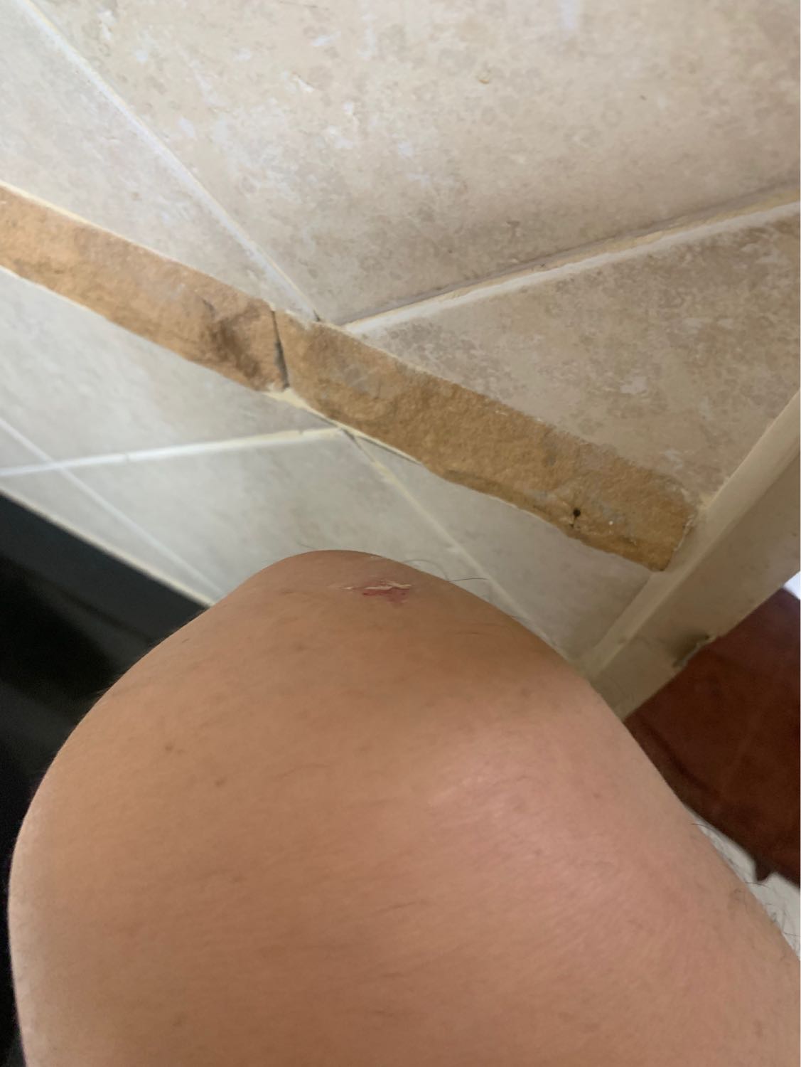 เช้านี้ รีบไปทำงาน ใส่ถุงเท้ายกขาขึ้นมา เข่าไปชนกับขอบหินขัดที่ผนัง ฟาดเคราะห์ไป
