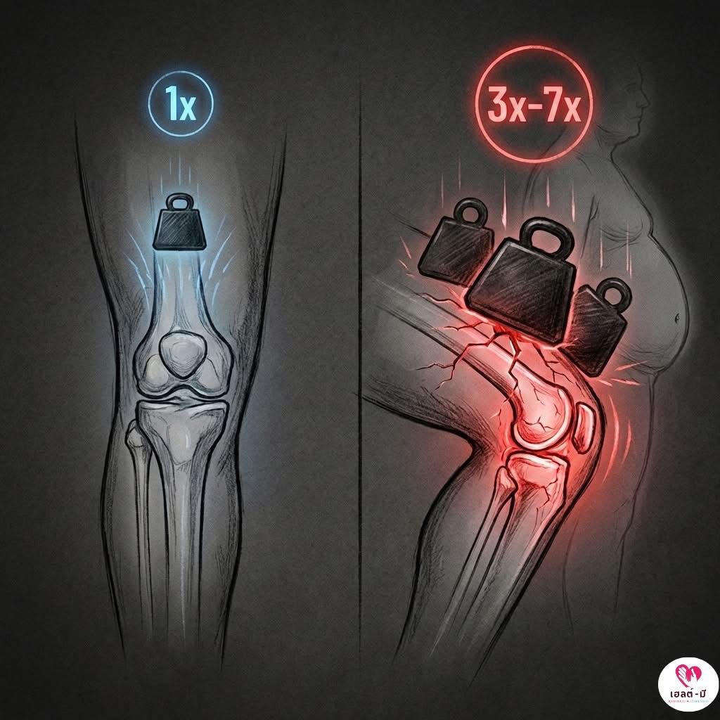 น้ำหนักตัวขึ้น 1 โล... เข่ารับภาระเพิ่มกี่โล? 🦵🏻🦵🏻🦵🏻🦿🦿