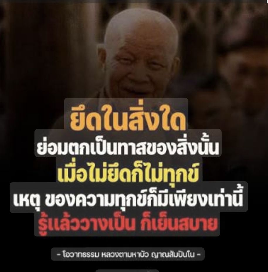 ยึดในสิ่งใดย่อมตกเป็นทาสของสิ่งนั้นเมื่อไม่ยึดก็ไม่ทุกข์เหตุของความทุกข์มีเพียงเท่านี้รู้แล้ววางก็เย็นสบาย