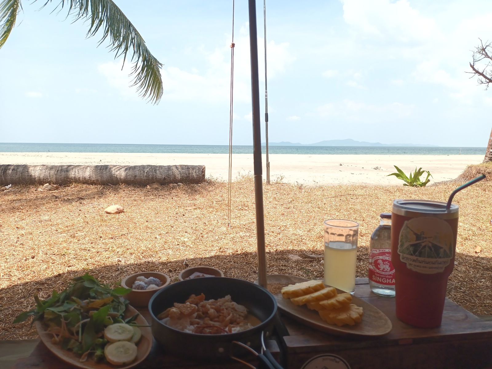 น้ำทะเลเริ่มลง ทะเลแทบจะไร้คลื่น ดูสงบ งาม แดดแรง ช่วยให้ทะเลเป็นทะเล ขนมจีนอร่อย อิ่มครับ ออ มีบริการกาแฟ โอวัลตินทั้งวันฟรี และบริการร้านอาหารด้วยครับ